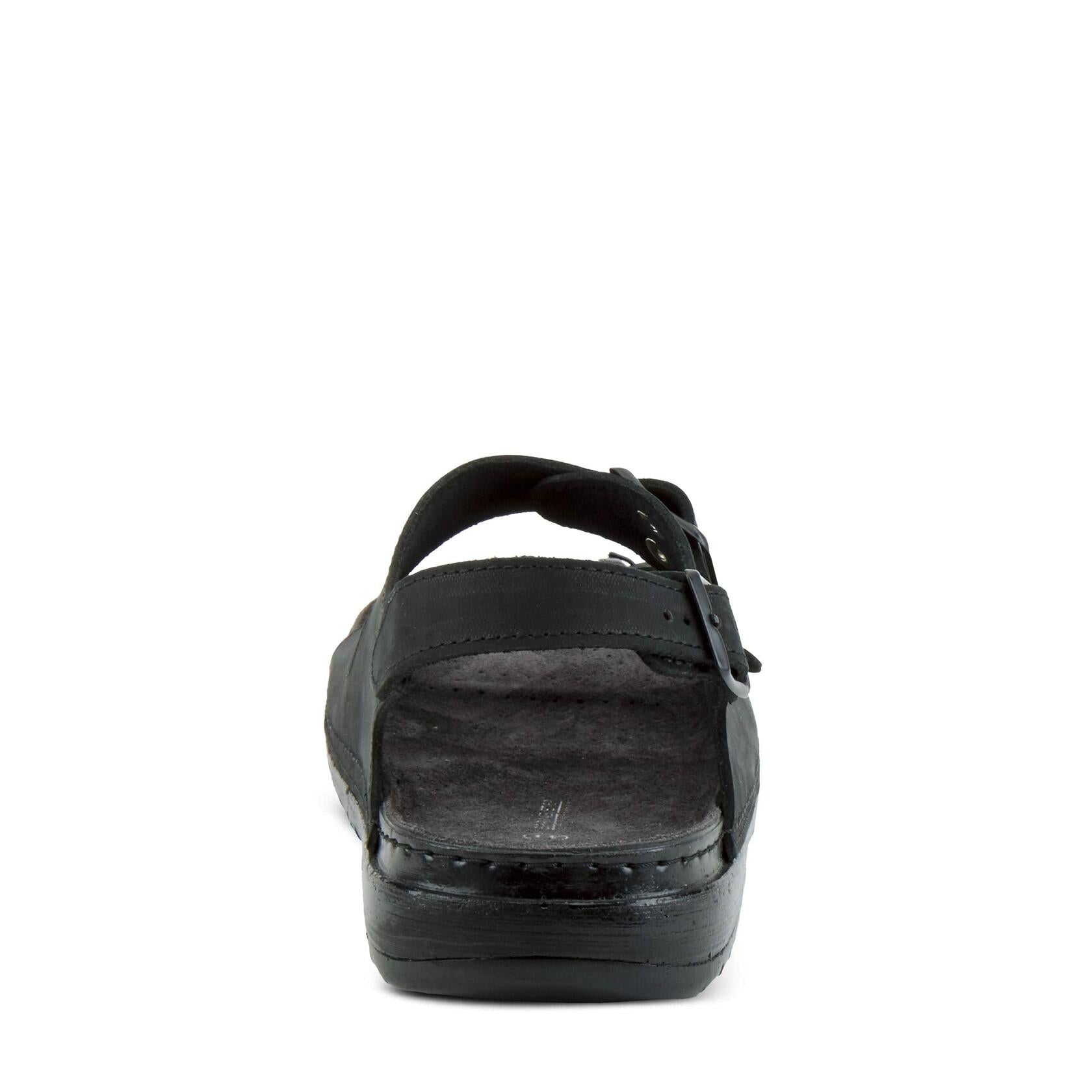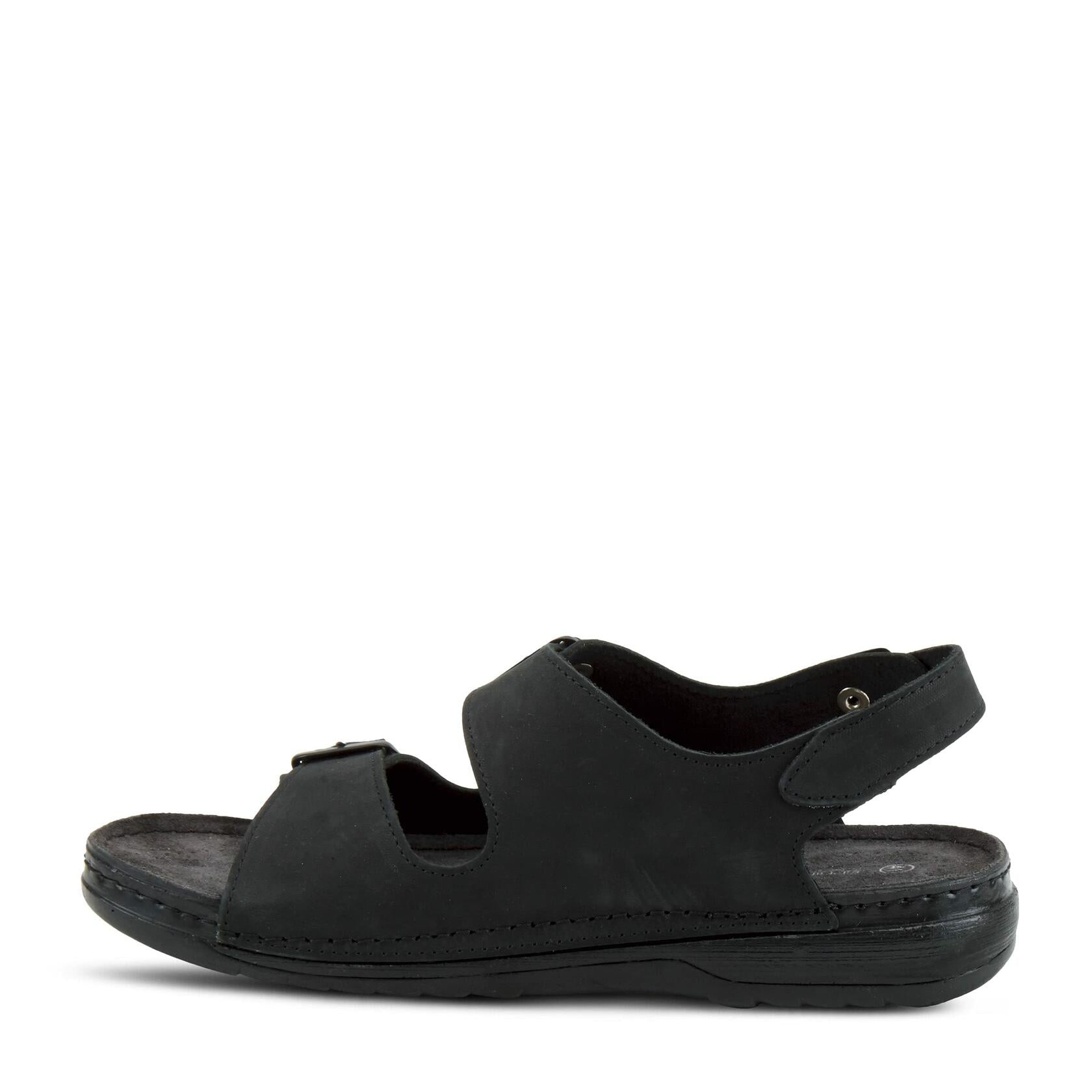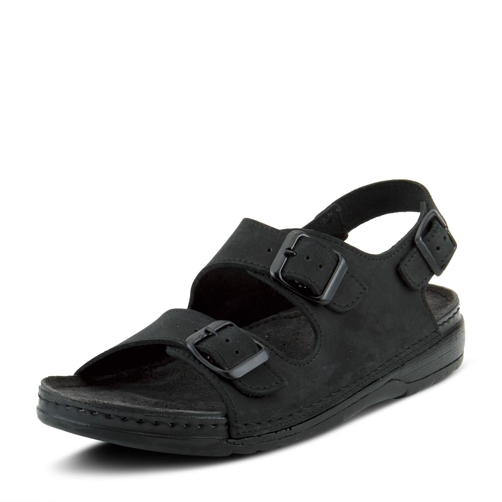• Spring Step Men's Style: SPIRO A stitch to sole construction nubuck leather back strap sandal with dual buckle straps for adjustability and fit. The leather covered padded footbed adds to the comfort of this very soft and flexible sandal.