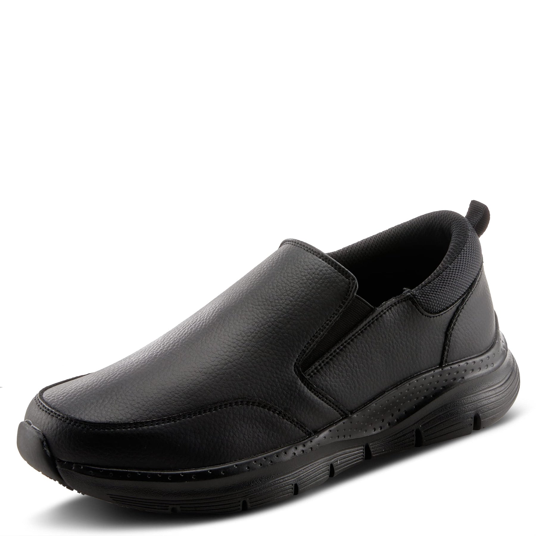 Spring Step Professional Style: WHITAKER Sleek and upscale all leather slip-on. The removable cushioned insole helps reduce stress from standing or walking for long periods of time. Ultra lightweight with an oil and skid resistant tread and a back pull loop. Upper: Leather Lining: Textile Insole: Textile Outsole: Polyurethane, Rubber Closure: Slip-on Heel Height: 1 1/2" Platform Height: 1" Features: - Arch Support, Comfort, Flexible Sole, Oil/Skid Resistant Outsole, Padded Insole, Removable Insole