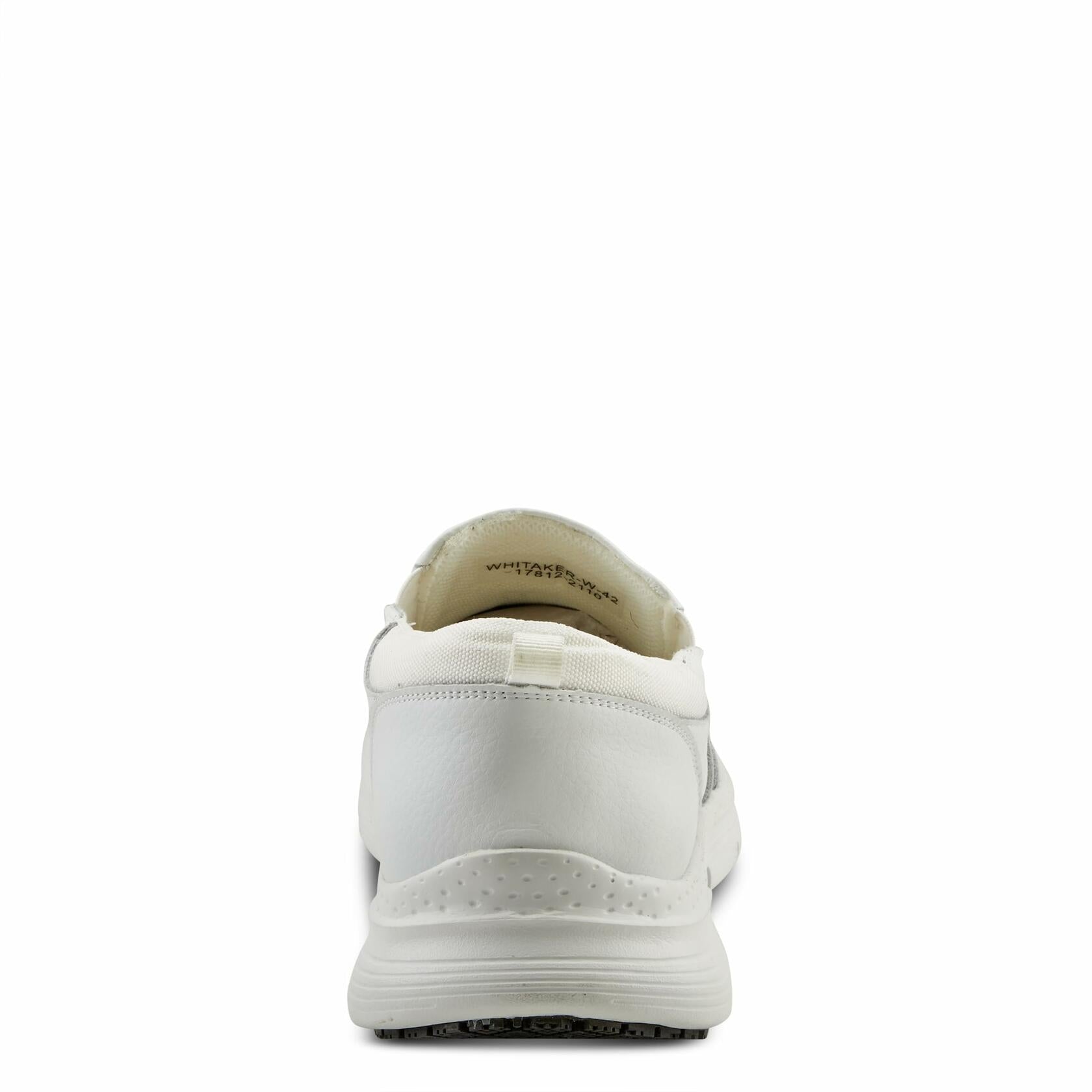 Spring Step Professional Style: WHITAKER Sleek and upscale all leather slip-on. The removable cushioned insole helps reduce stress from standing or walking for long periods of time. Ultra lightweight with an oil and skid resistant tread and a back pull loop. Upper: Leather Lining: Textile Insole: Textile Outsole: Polyurethane, Rubber Closure: Slip-on Heel Height: 1 1/2" Platform Height: 1" Features: - Arch Support, Comfort, Flexible Sole, Oil/Skid Resistant Outsole, Padded Insole, Removable Insole