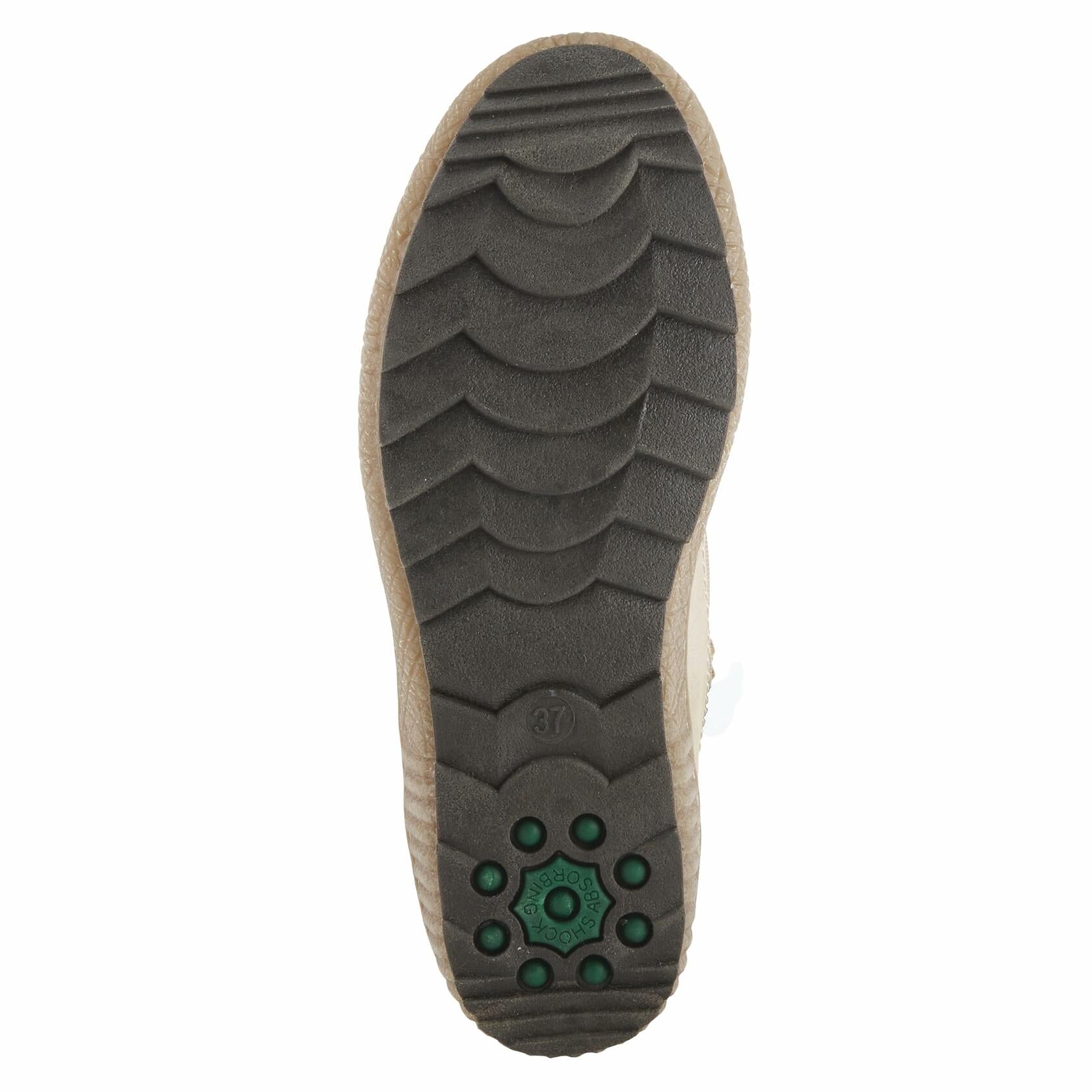 Spring Step Style: Cleora Experience the comfort revolution in this leather pull-on bootie featuring a pleated vamp and a dual zipper design all on a traditional rubber wedge outsole. Heel Height (approximately): 1 1/2" Platform Height (approximately): 1 1/4" Back Shaft Height (approximately): 3 3/4" Circumference (approximately): 10" Features: -Premium water resistant synthetic leather, round toe silhouette, vegan friendly materials, tonal stitching. -Dual full length zippers (inside and outside) with antiqued metal zipper pulls. -Super soft and cozy faux shearling lining. -Soft and cozy comfort padded textile insole. -Rubber outsole with flexible forefoot and shock absorbing technology. -Imported.