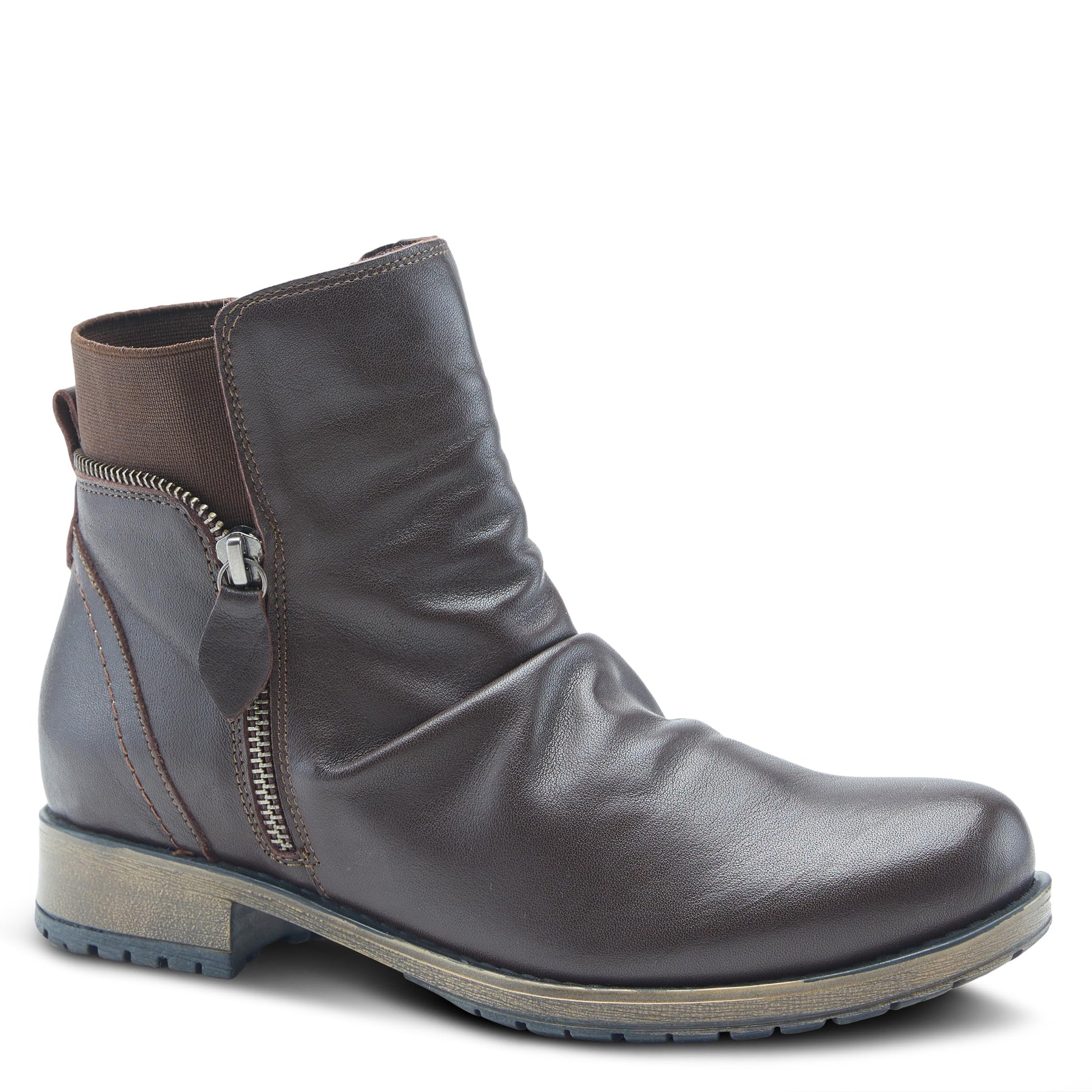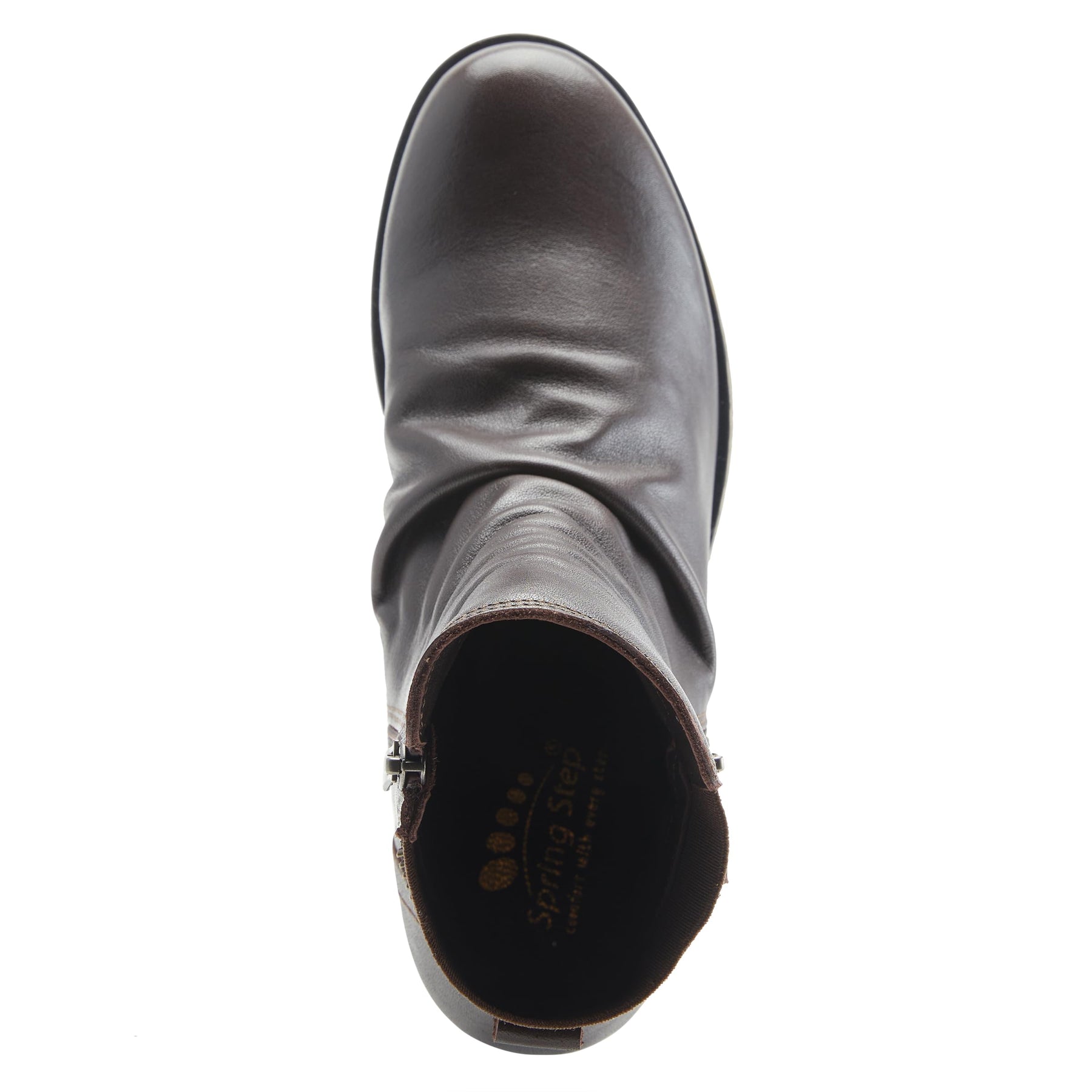 Spring Step Style: ABEL Fashionable outside moto-style decorative zipper brings a cool element to this buttery soft classic leather bootie. The elastic stretch band, cushioned insole and flexible sole bring comfort. Upper: Leather Lining: Textile Insole: Textile Closure: Zipper Heel Height: 1" Platform Height: 3/8" Shaft Height: 4 1/2" Circumference: 9" Features: - Comfort, Flexible Sole, Premium, Stretchable Made in Turkey