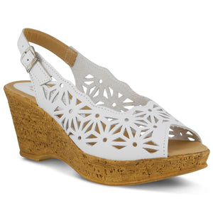 from 0 reviewsHeel Height: Approx. 3'' Tall. This beautiful lightweight sling-back sandal offers ultimate everyday comfort. It's unique punchwork detail allows for breathability, and an adjustable buckle ankle closure provides customized fit. It has a fully padded insole for superb comfort. This faux cork-finished wedge is made of polyurethane and provides maximum flexibility, cushion and support.