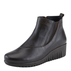 SPRING STEP Style: ADDLYN This scrunched nubuck leather boot is a stylish and comfortable choice for everyday wear. The outside decorative zipper adds a touch of personality, while the functional inside zipper makes them easy to put on and take off. With sturdy construction and a cushioned footbed, these boots are sure to become a go-to in your wardrobe. Upper: Nubuck Leather Lining: Leather Insole: Leather Outsole: TPR Closure: Zipper Heel Height: 1 1/4" Platform Height: 1" Shaft Height: 4 3/4" Circumference: 8 3/4" Features: - Comfort, Flexible Sole - Padded Insole, Premium Fit Recommendation: True to Size Made in Turkey