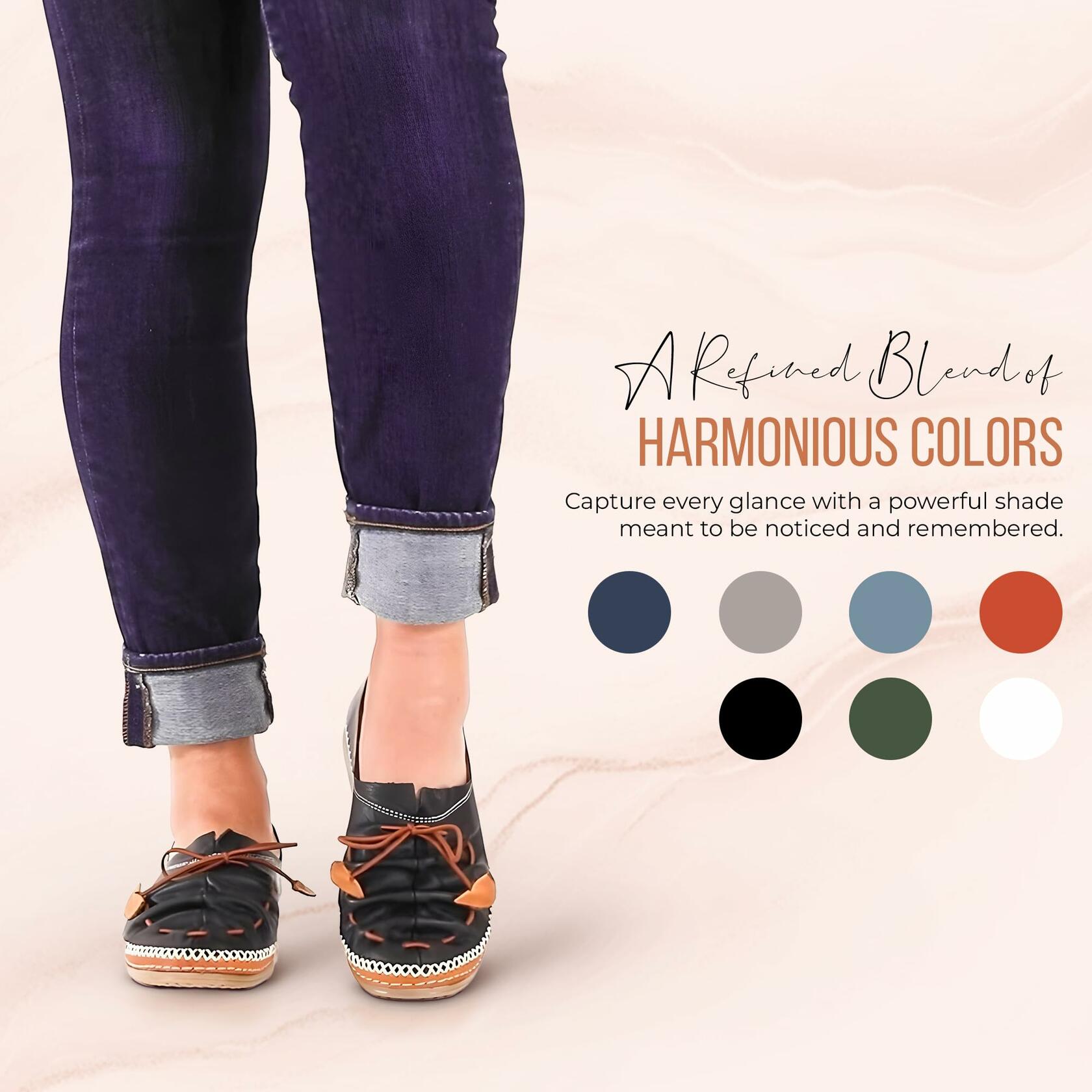 Trendy artistic slip-on shoe featuring an incorporated elastic vamp-tie and contrast whip-stitching.