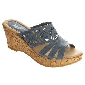 from 0 reviewsProduct Description Star-shaped printed laser-cut leather slide sandal with a cork-inspired textured wedge. It s a breeze to play up your pretty pedicure in this charming women s Dora slide sandal by Spring Step. Wrapped in intricately punched leather with a snazzily scalloped vamp and open toe the enchanting sandal brings warm-weather flair to workdays luncheons long weekends and wherever else your spring and summer take you. We love its 2-3/4-inch cork wedge and generously padded footbed which pair with a 1-inch platform to evenly distribute weight for a wearable spin on leggy lift and cool classic comfort.