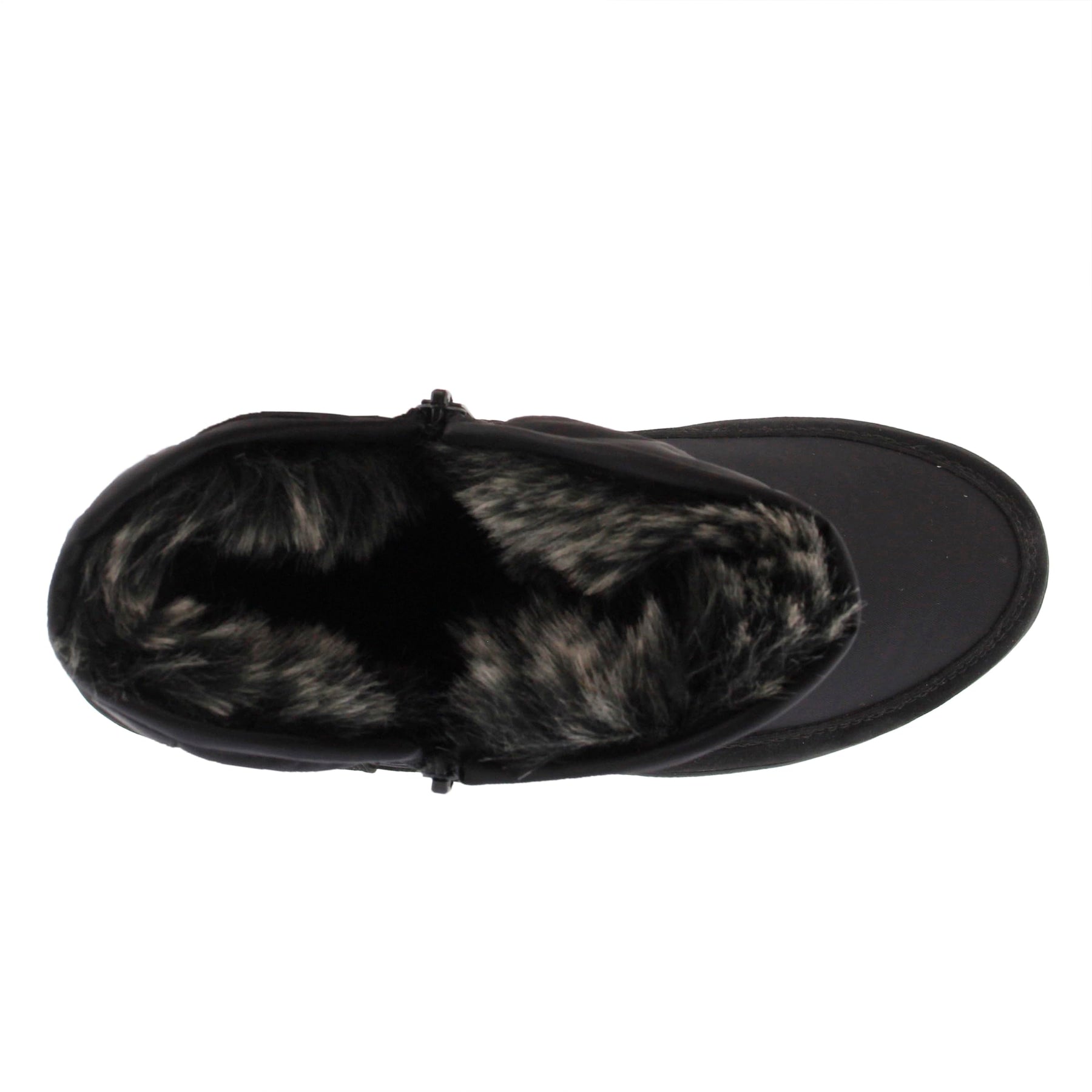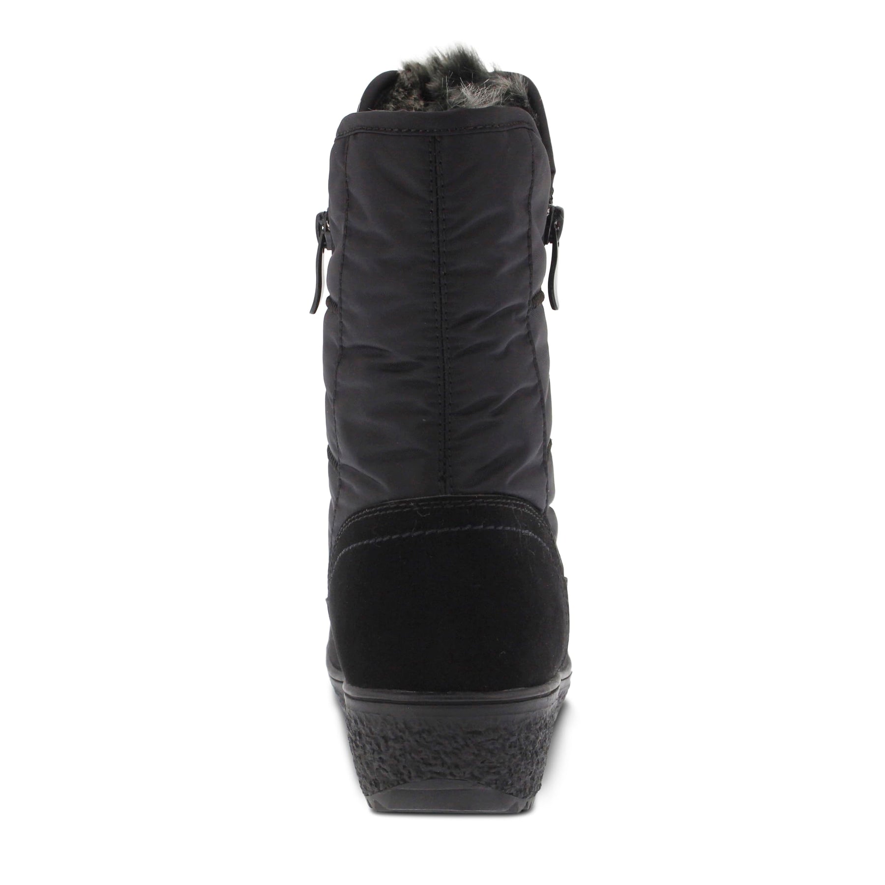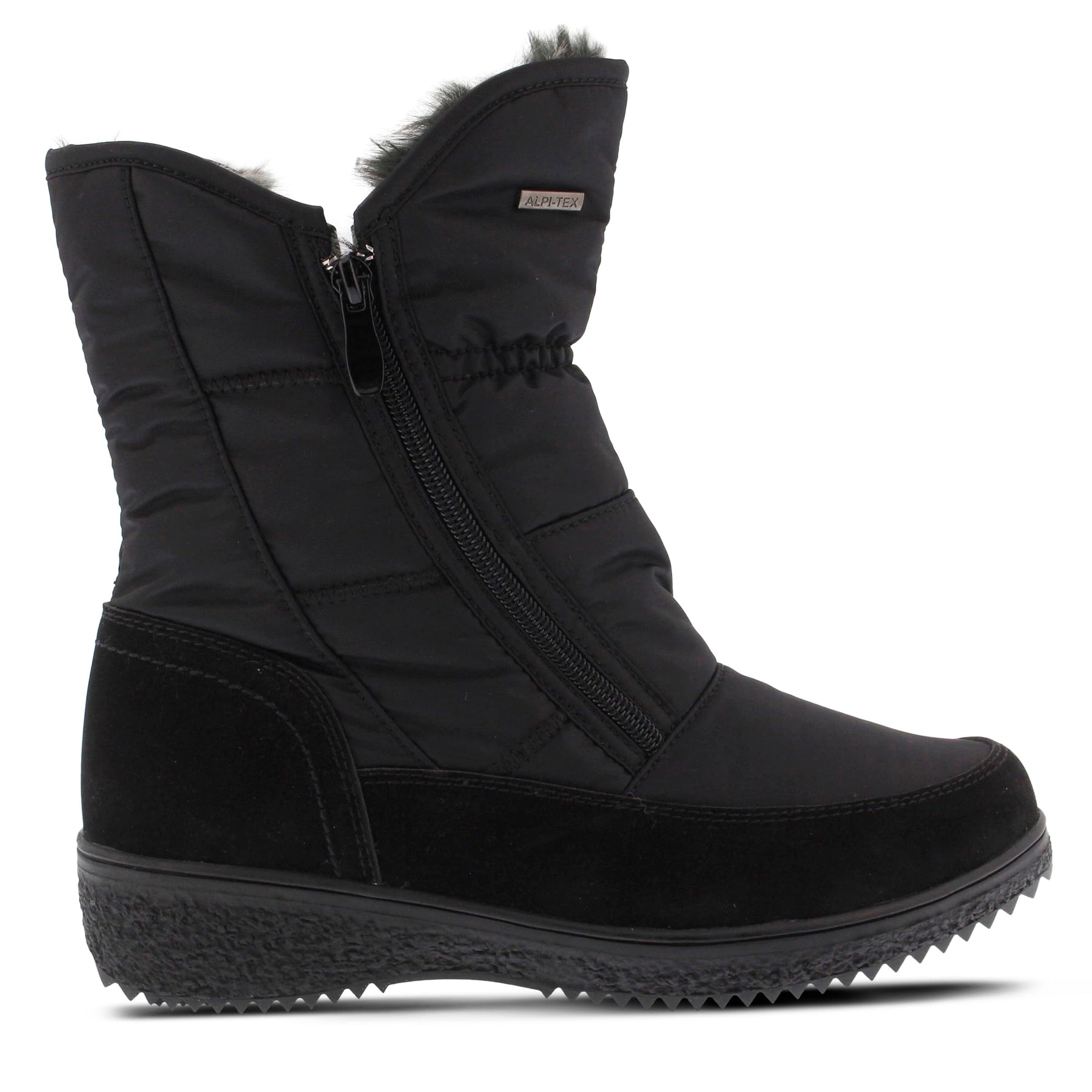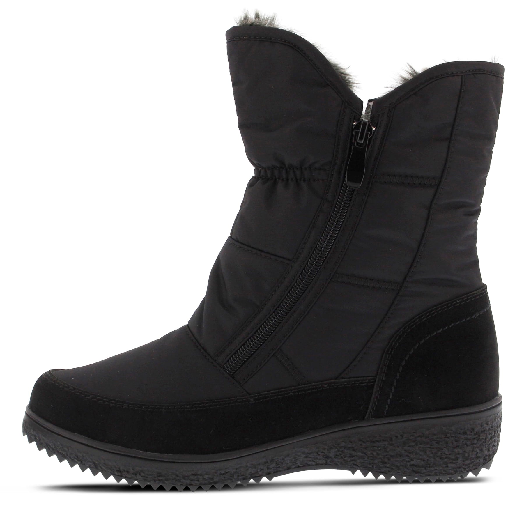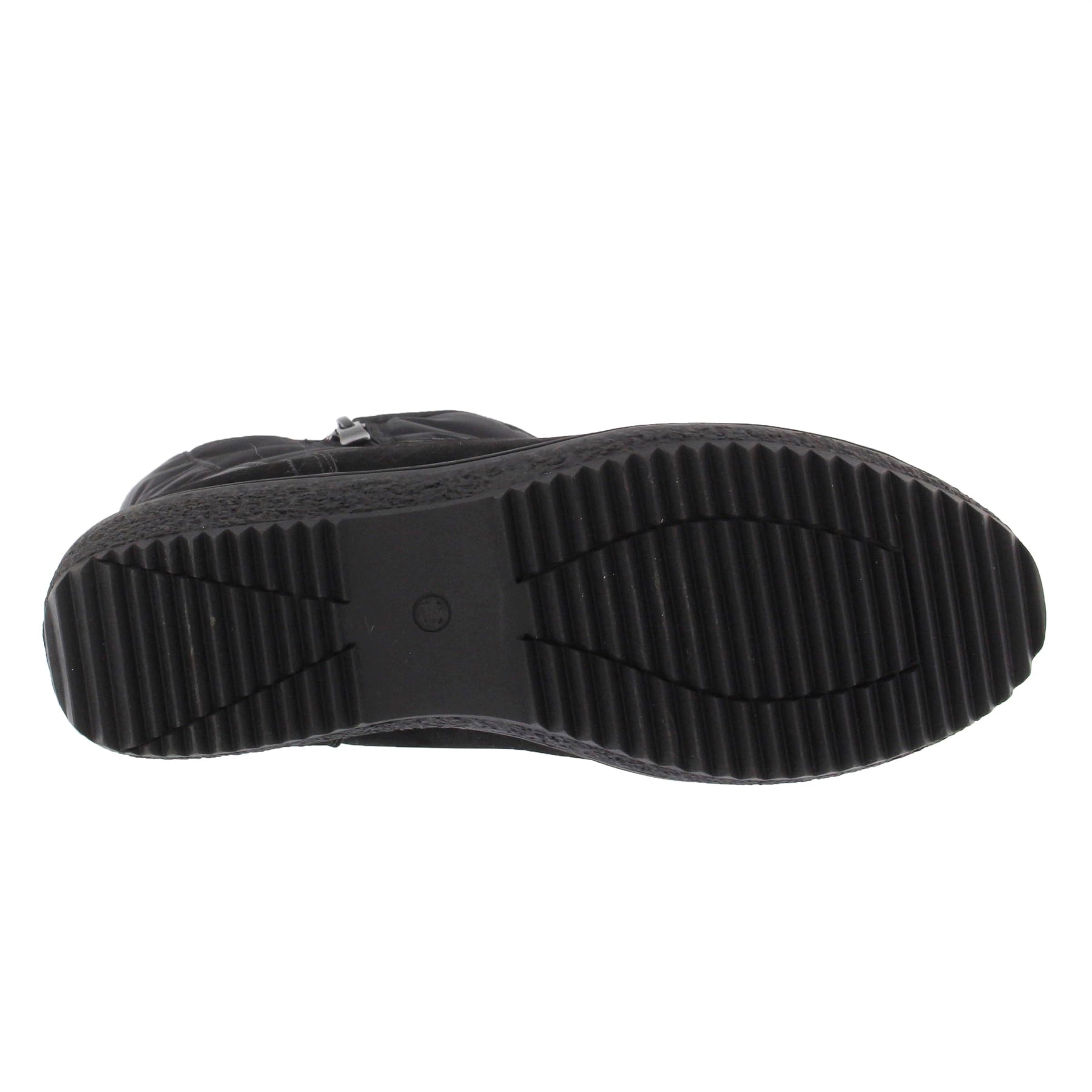 Waterproof quilted nylon pull-on winter boot with a side zipper