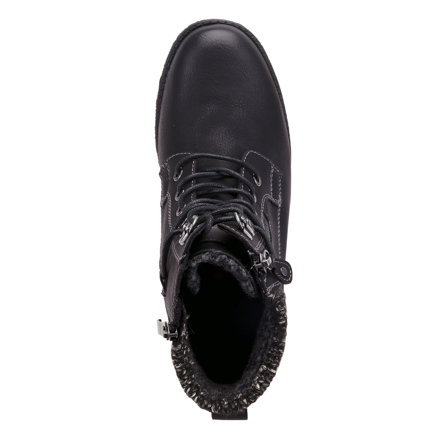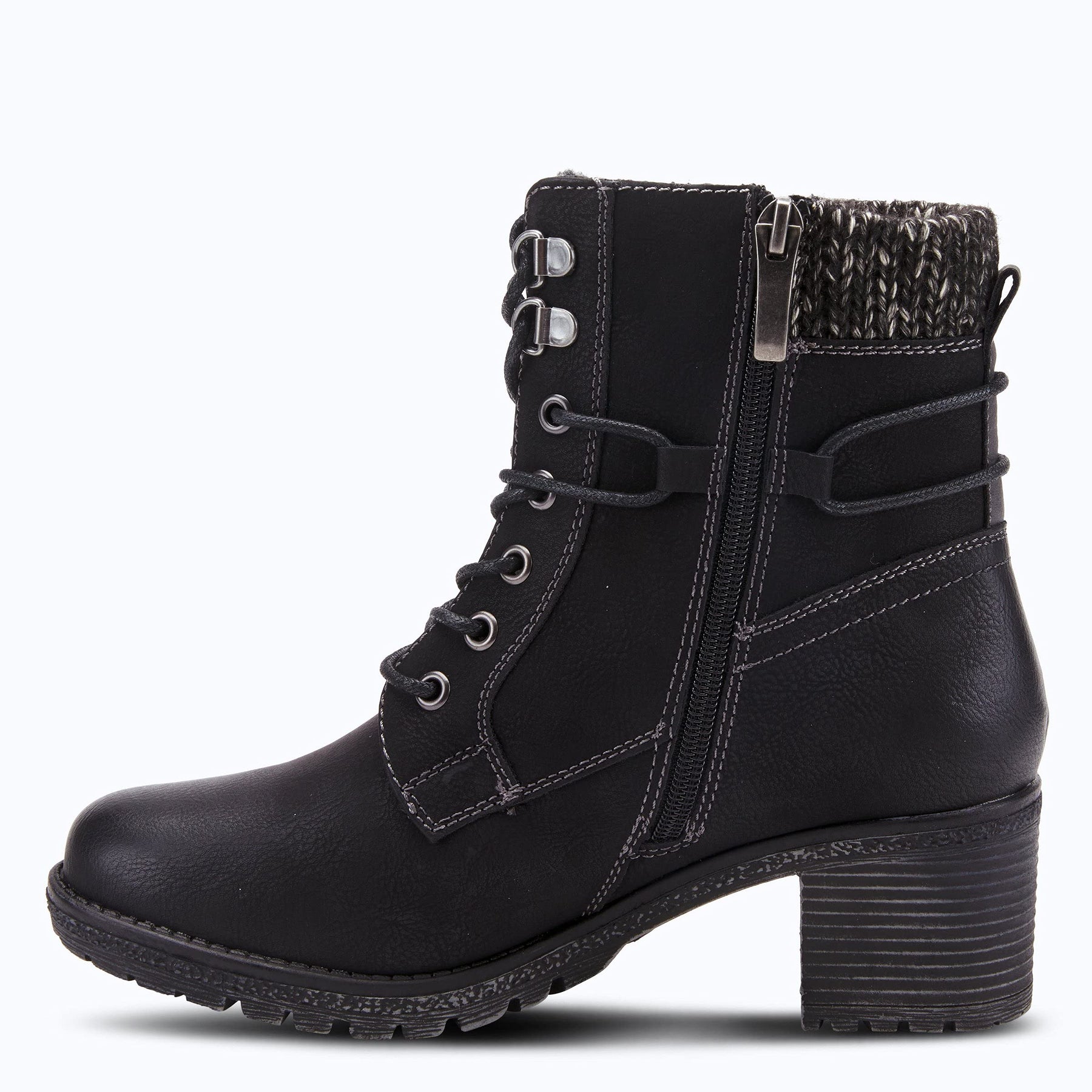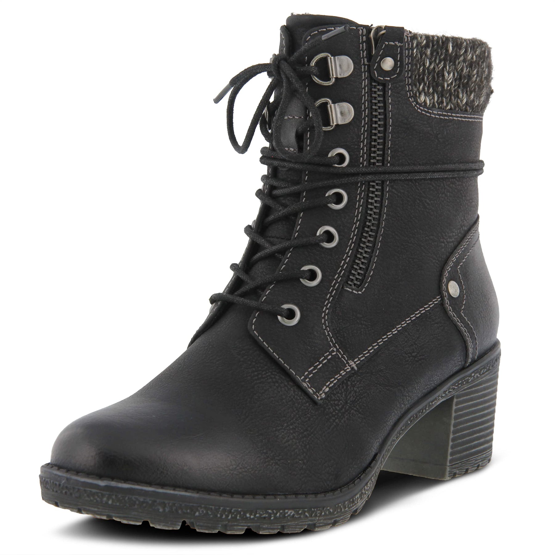 Stylish, water resistant, casual mid boot featuring a soft padded woven cuff, functional lace up design for maximum adjustability and a decorative outside zipper.