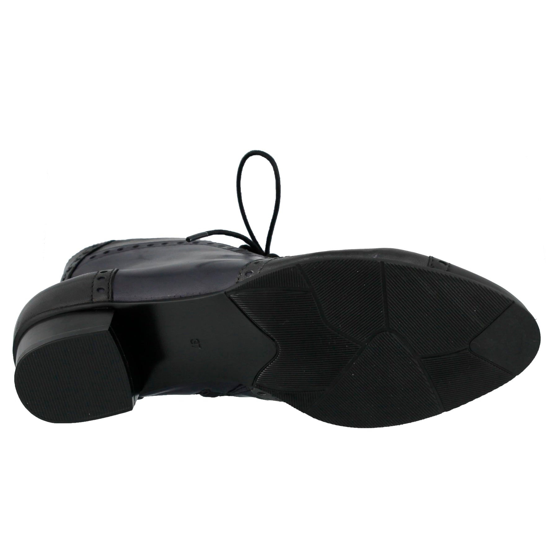 Description Polished, subtle color-blocked leather lace-up bootie with brogue details and metal eyelets.