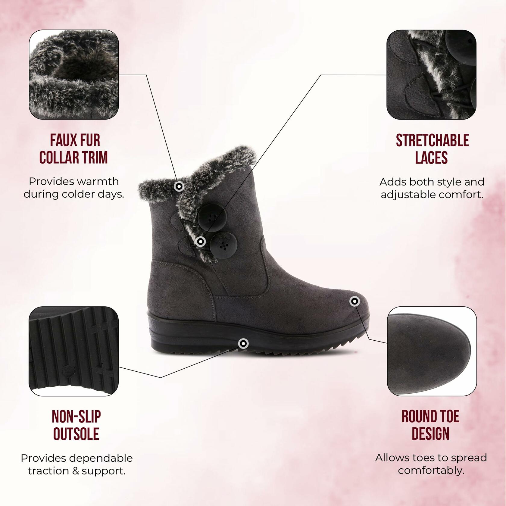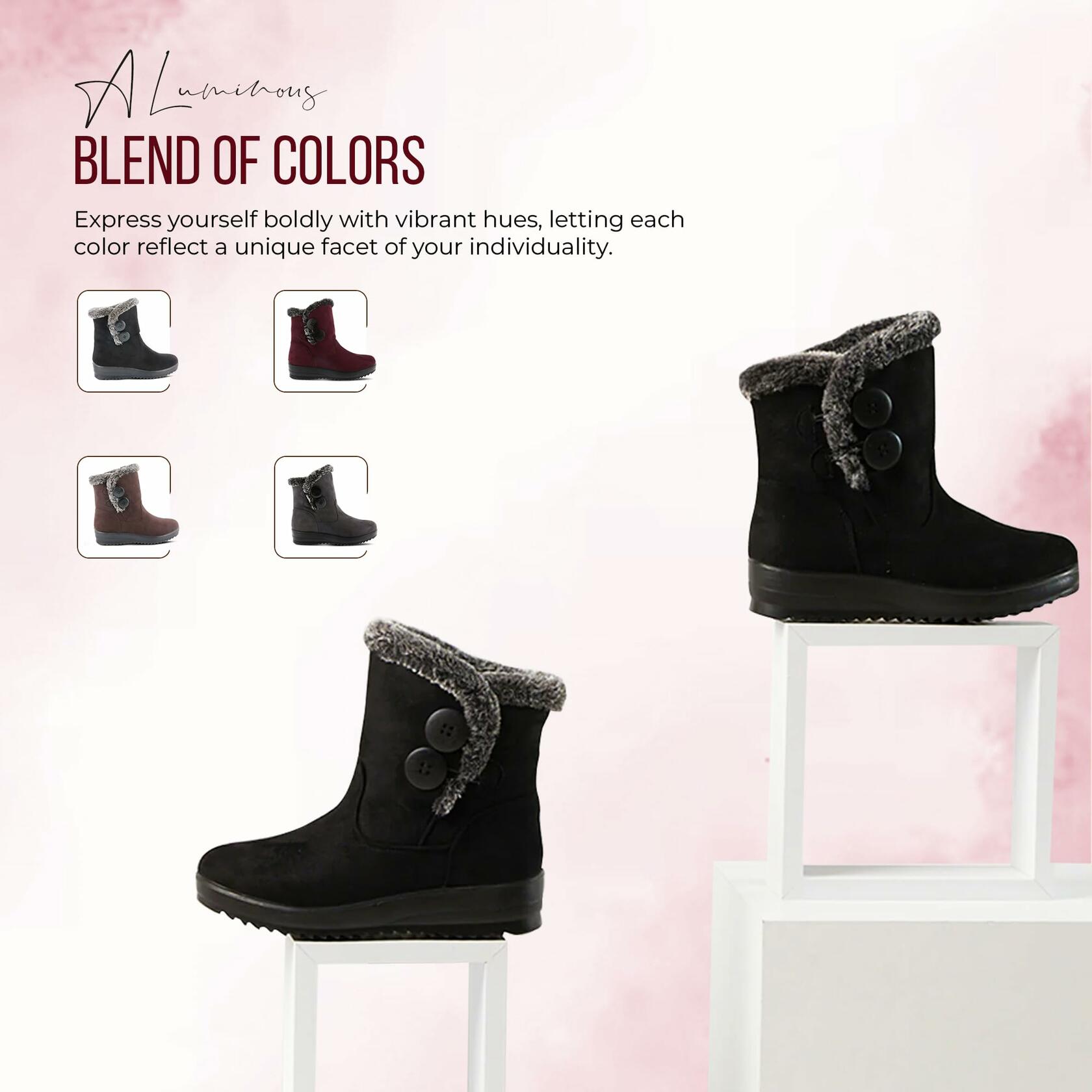 • π‚πŽππ•π„ππˆπ„ππ“ ππ”π“π“πŽπ π‚π‹πŽπ’π”π‘π„: Slip in and out of these winter boots effortlessly with the convenient button closure. These ankle boots for women comfy not only add a practical element to the design but also enhance the overall sleek and modern aesthetic.