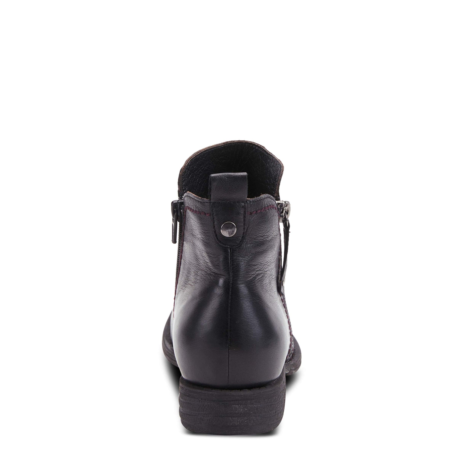 Women's Spring Step, Oziel Bootie. A stylish and classic bootie featuring a stacked heel and padded leather insole for added arch support. Leather upper Side zipper closure for an easy on and off Padded footbed for added comfort Smooth leather lining for an abrasion free foot environment 1 inch stacked block heel with 3/8 inch platform Shaft Height (approximately): 7" Circumference (approximately): 9-10" Rubber outsole. Heel Height of 1.00 inches. Platform Height of 0.25 inches.
