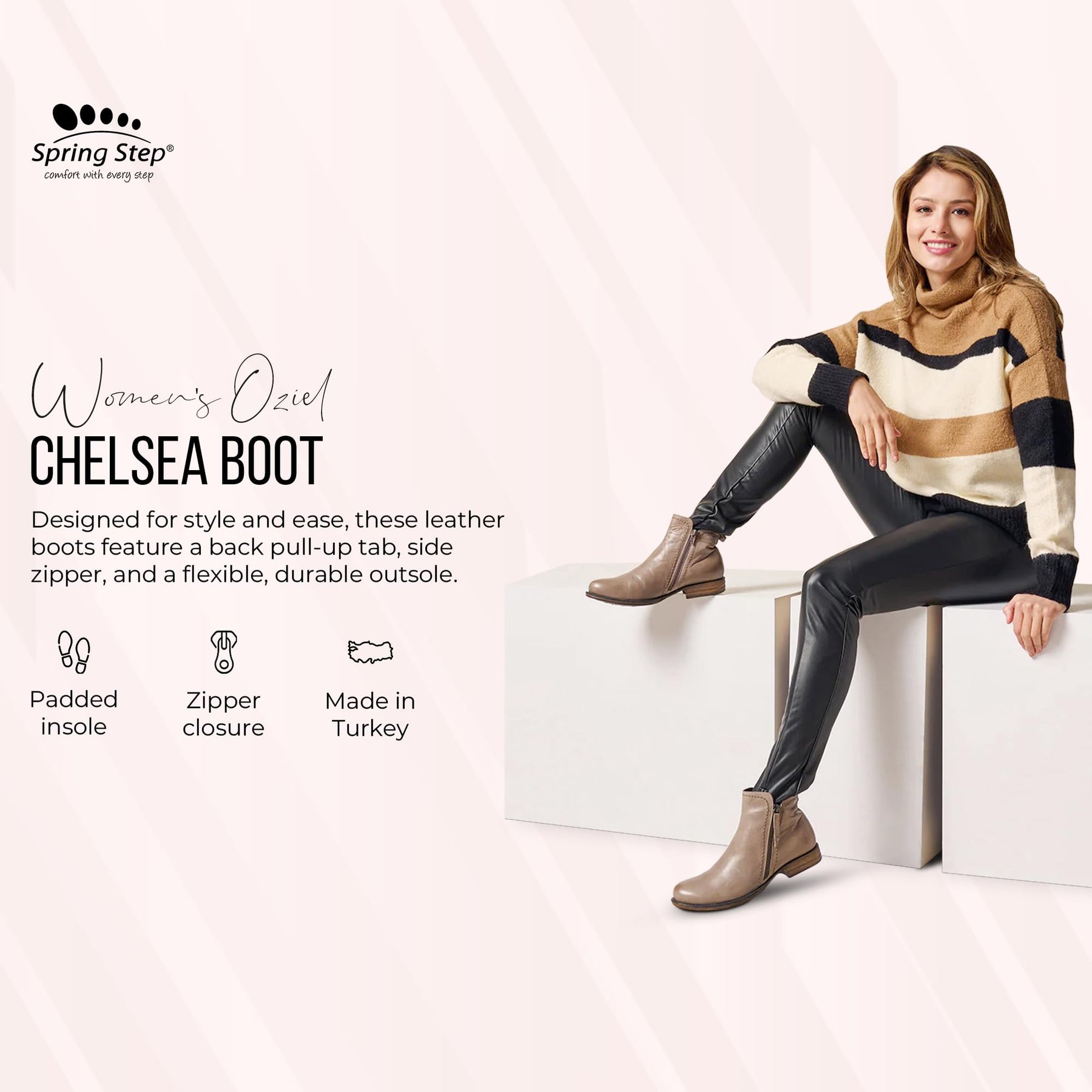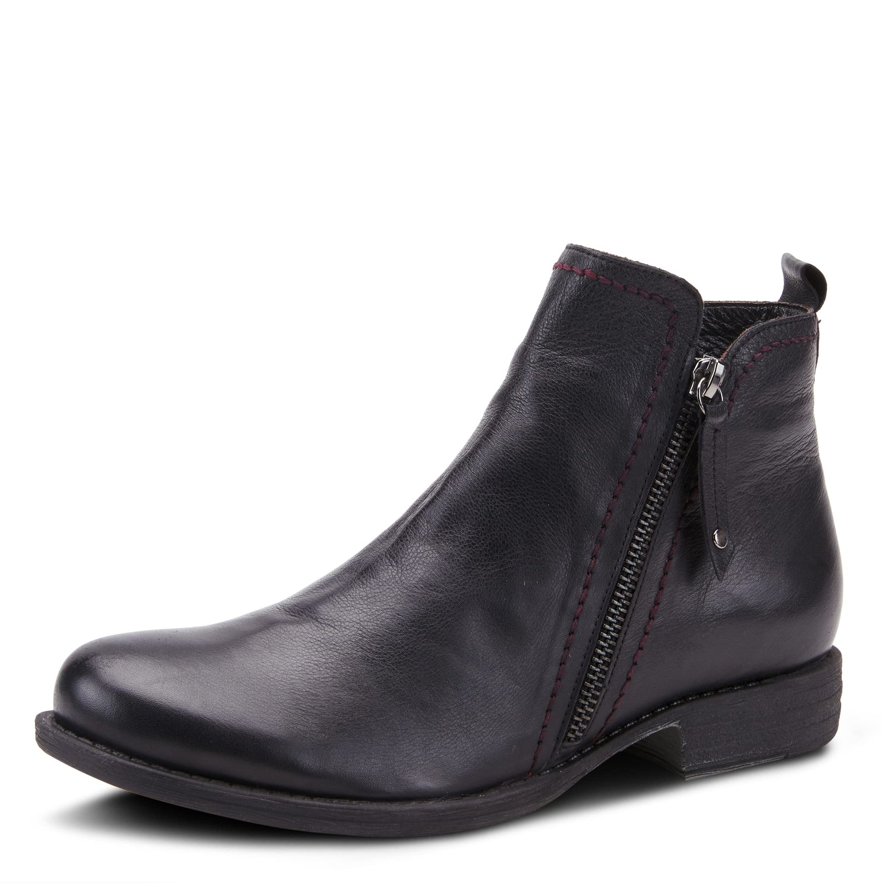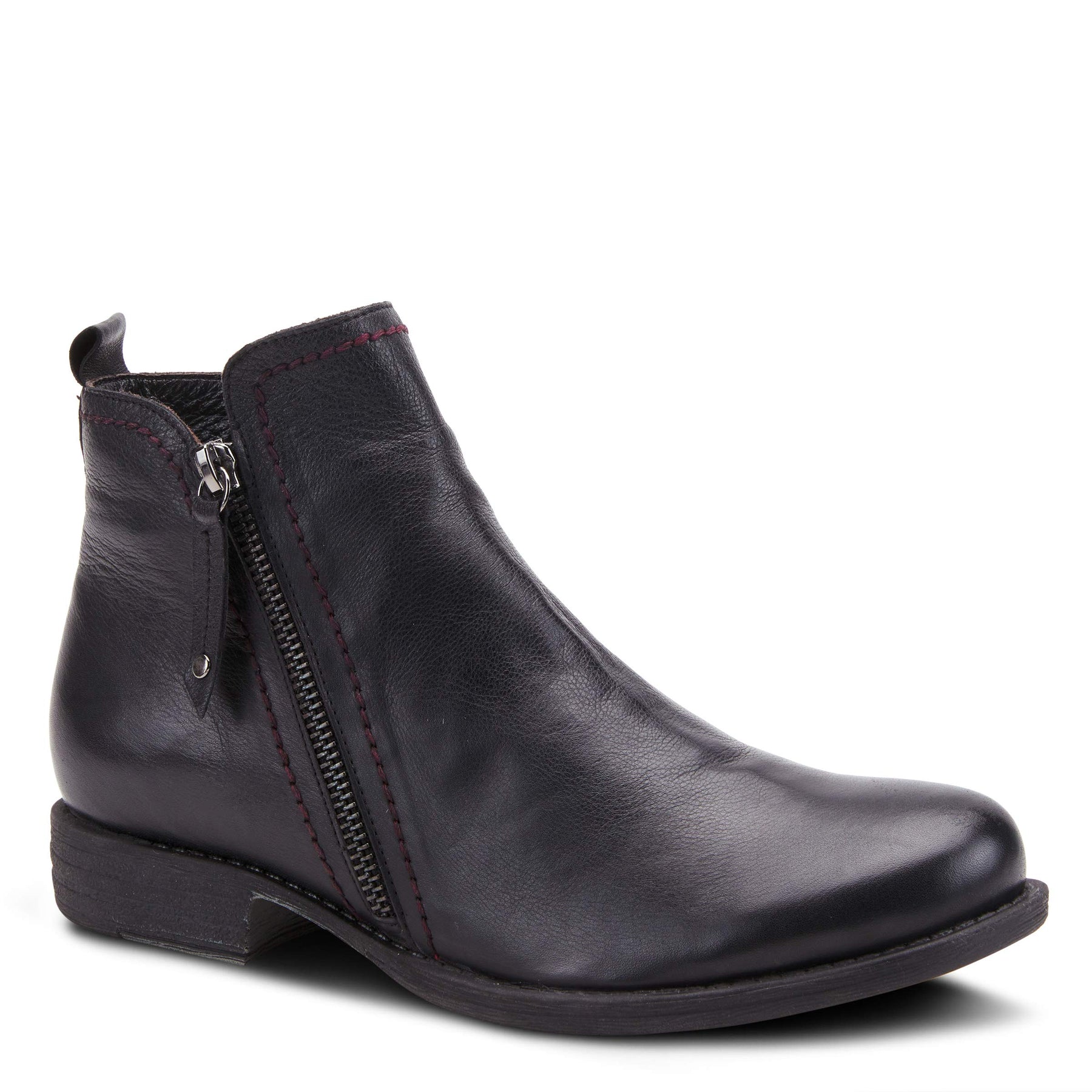 • Decorative outside zipper with a studded leather zipper pull, functional inside zipper, back pull up tab and thick accent stitches all on a flat, chunky heel, added Insole, Premium, Flexible Sole.