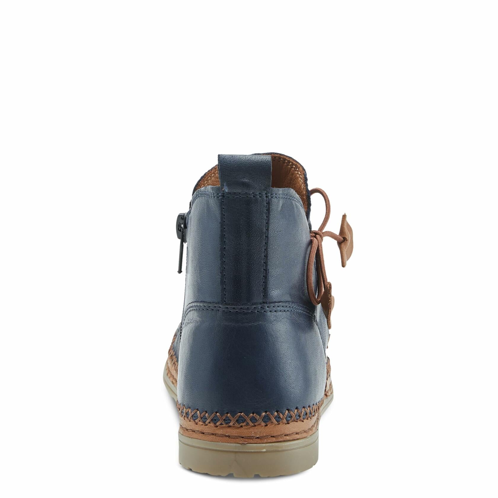 Spring Step Style: POMEROY A butter soft leather bootie designed with a basketweave cap toe and decorative elastic tie detail on one of our most poPolyurethanelar, comfortable outsoles. Upper: Leather Lining: Textile Insole: Textile Outsole: Rubber Closure: Zipper Heel Height: 3/4" Shaft Height: 4 1/2" Circumference: 9 1/2" Features: Made in Turkey