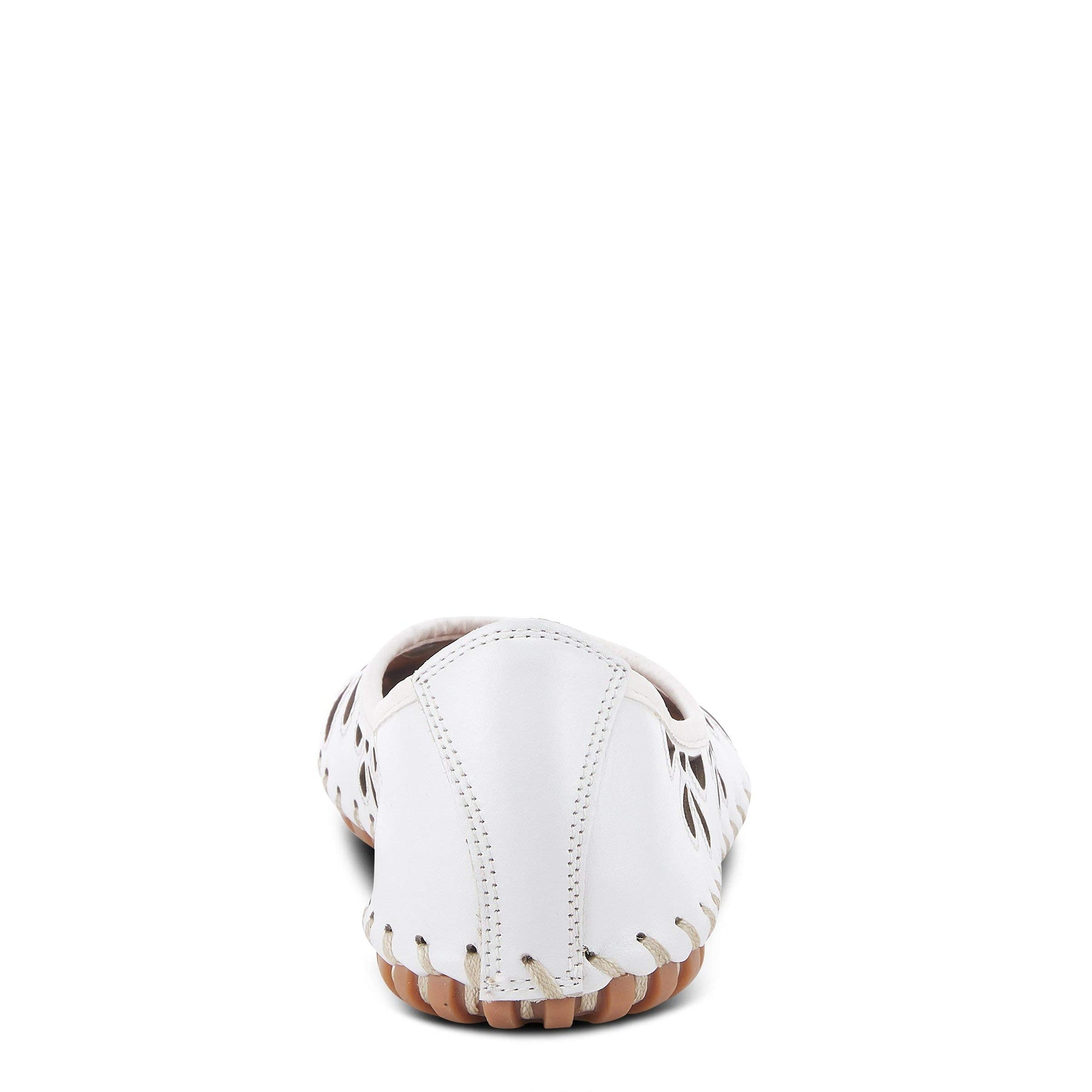 Spring Step Style: Rayely Showstopping leather slip-on ballerina flat is a European influenced design featuring floral shape laser cutouts and outlining stitch design for a unique modern appeal on an incredibly flexible and comfortable stitch to construction sole. Heel Height: 1/2" Platform Height: 1/2" Features: - Heel Type: Flat - Toe Type: Closed toe, Round toe - Features: Arch Support, Comfort, Padded Insole, Removable Insole - Upper: Leather - Lining: Leather - Insole: Leather - Outsole: Rubber - Closure: Slip-on Disclaimer: Due to the nature of the upper material, variations in the print may occur.