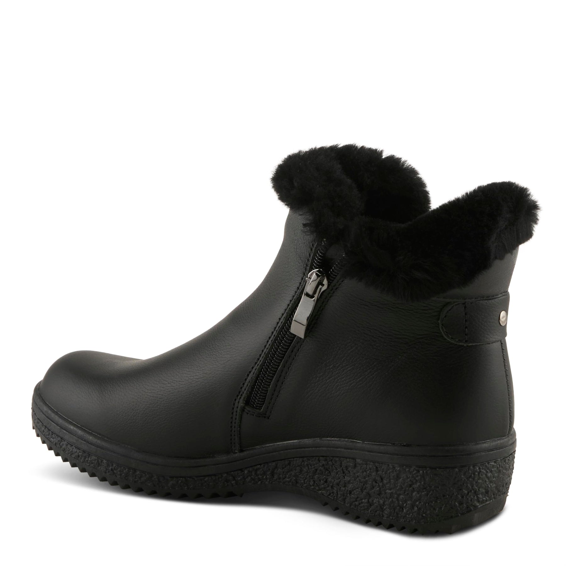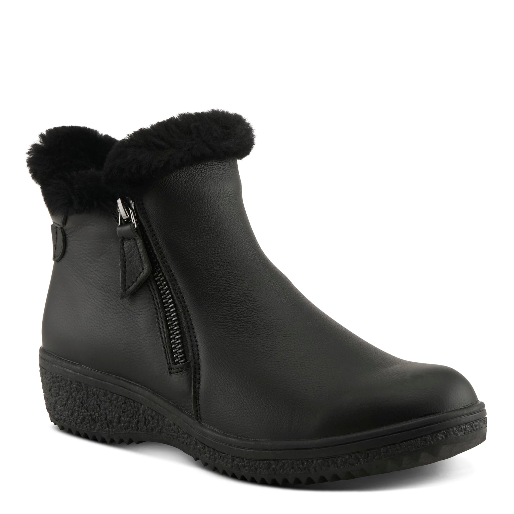 Spring Step Style: REPUBLIC This leather ankle bootie trimmed with faux fur is built with water-resistant protection and will keeps you comfortable all day long. Fully lined short faux fur insole. Upper: Leather, Suede Lining: Faux Fur Insole: Faux Fur Outsole: TPR Closure: Zipper Heel Height: 2" Platform Height: 1" Shaft Height: 5" Circumference: 9" Features: - Comfort, Flexible Sole, Water Resistant