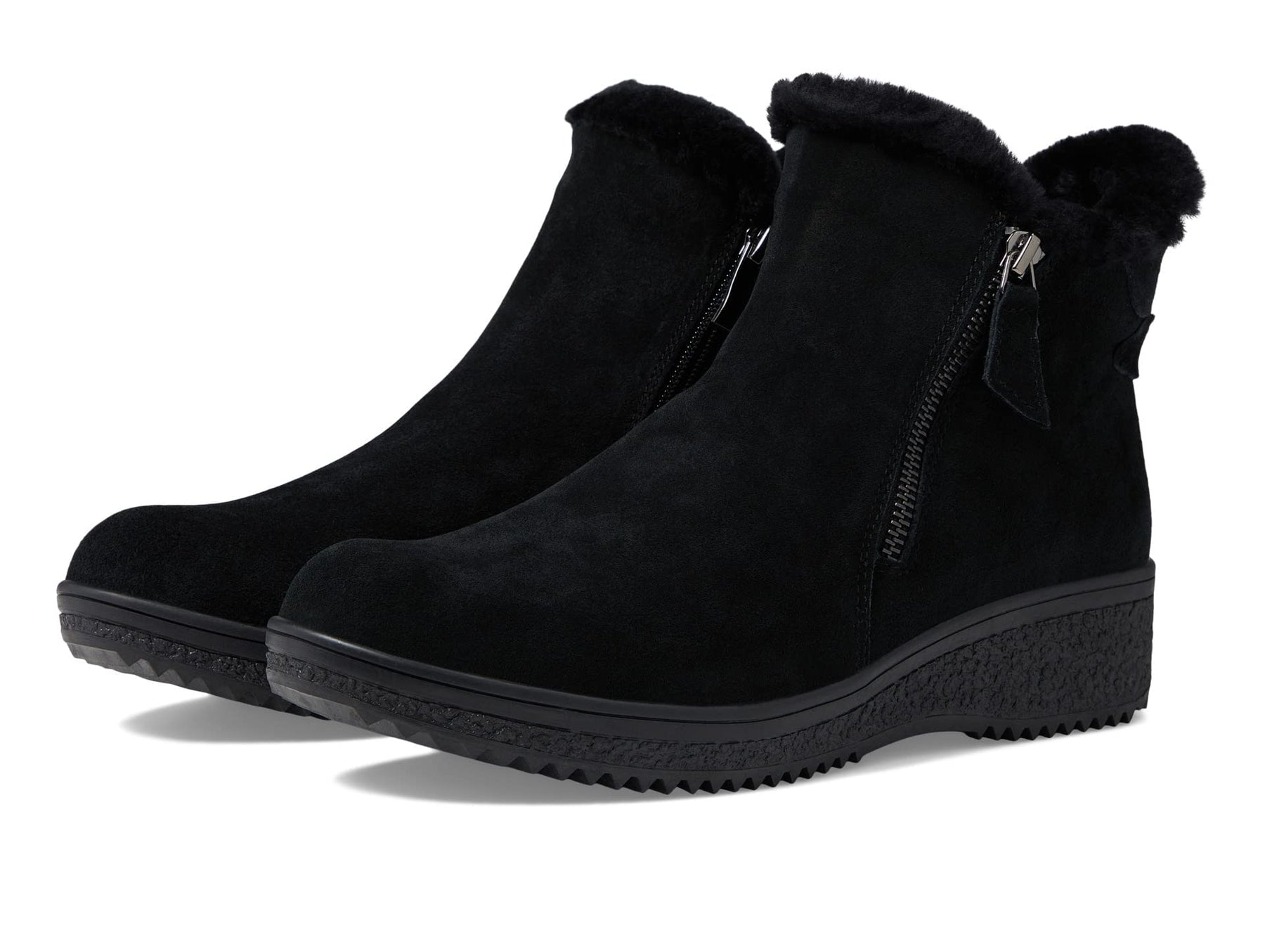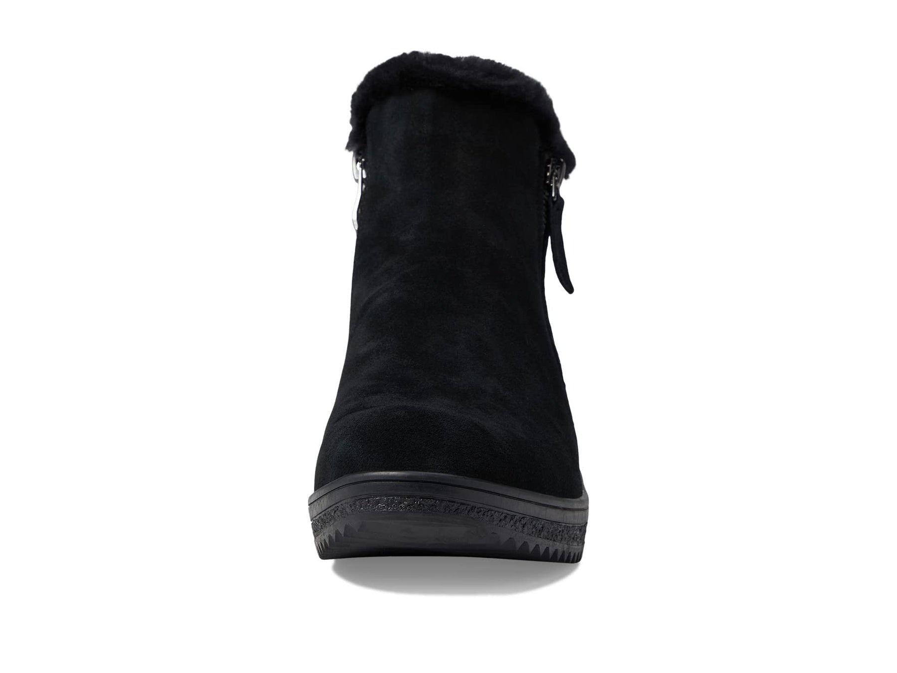 Spring Step Style: REPUBLIC This leather ankle bootie trimmed with faux fur is built with water-resistant protection and will keeps you comfortable all day long. Fully lined short faux fur insole. Upper: Leather, Suede Lining: Faux Fur Insole: Faux Fur Outsole: TPR Closure: Zipper Heel Height: 2" Platform Height: 1" Shaft Height: 5" Circumference: 9" Features: - Comfort, Flexible Sole, Water Resistant