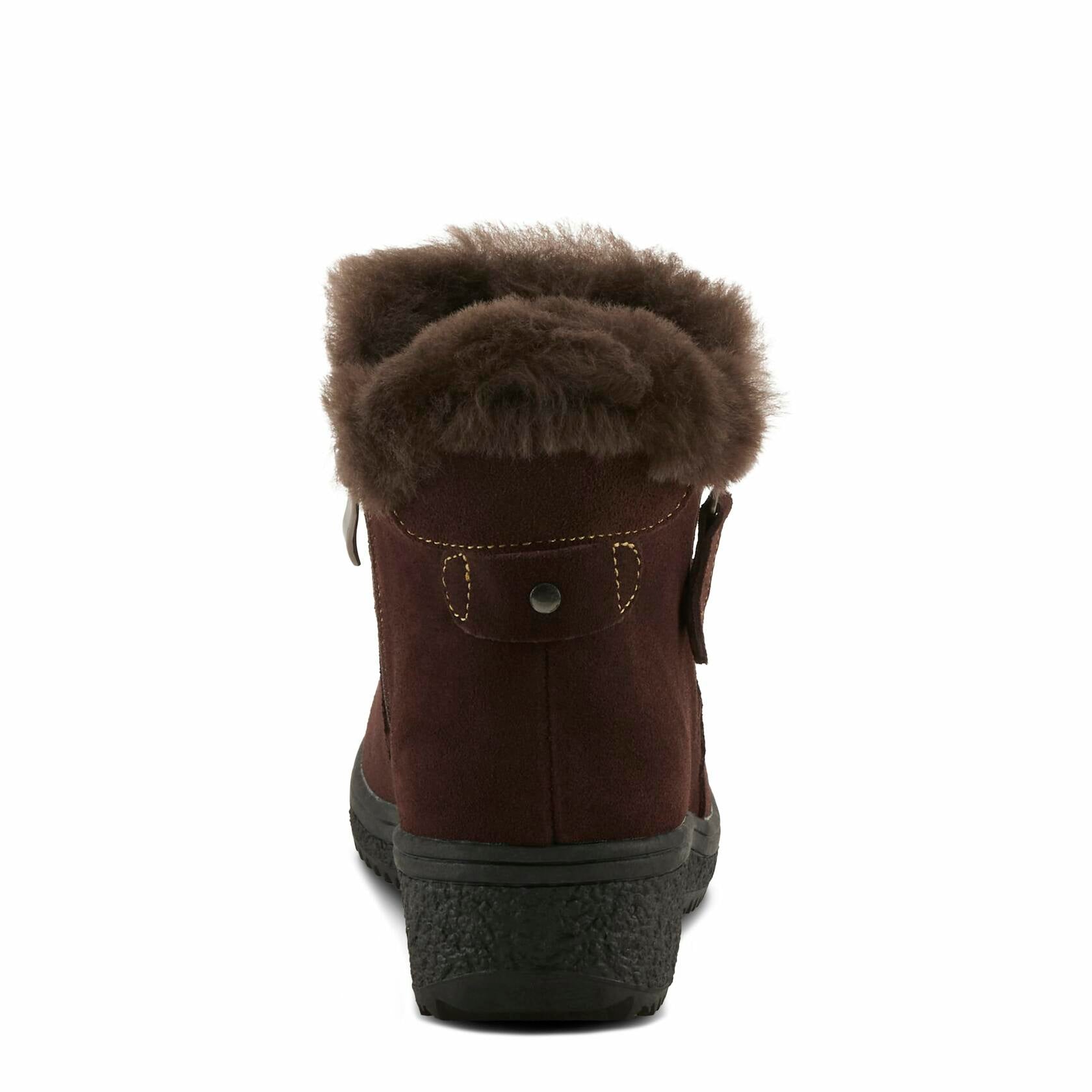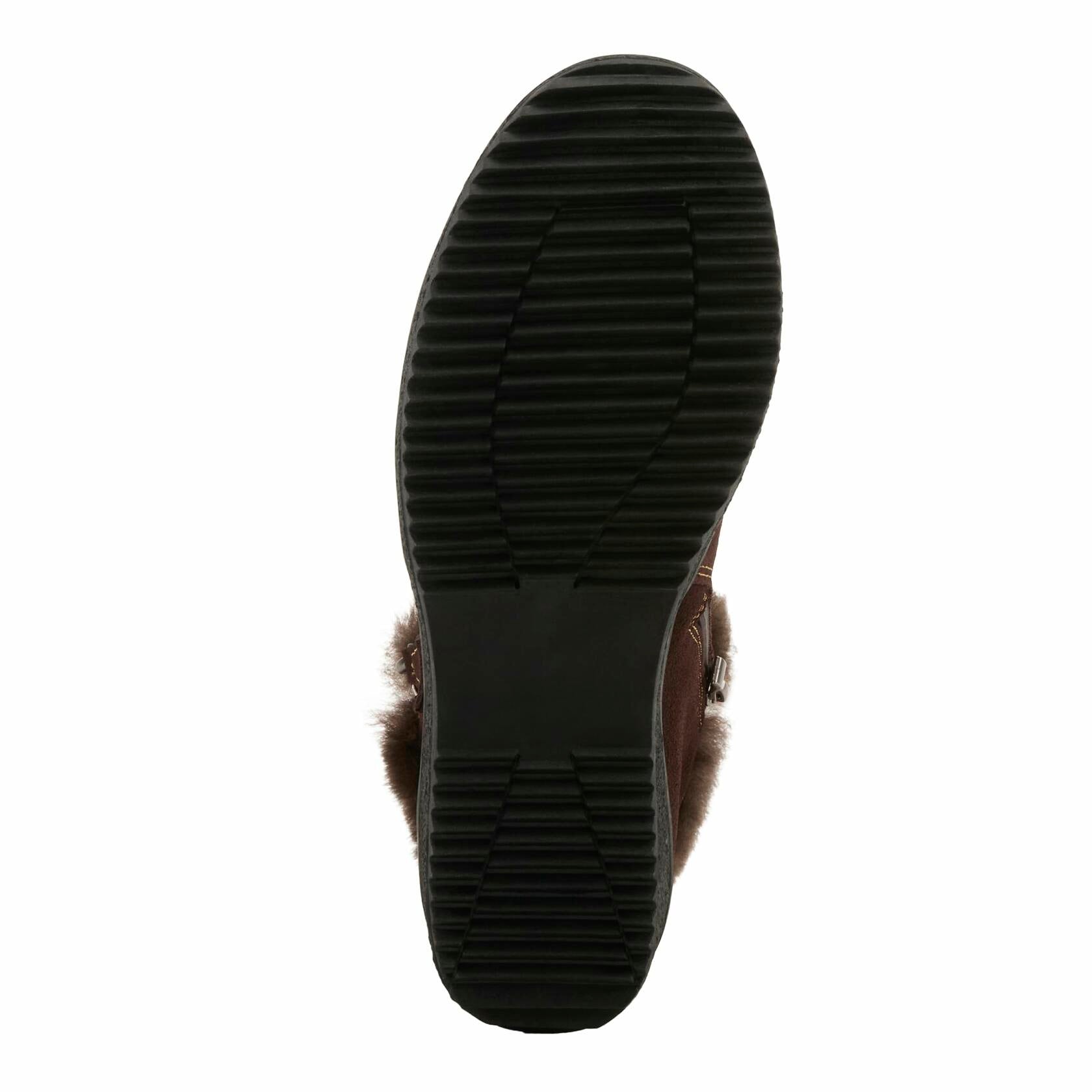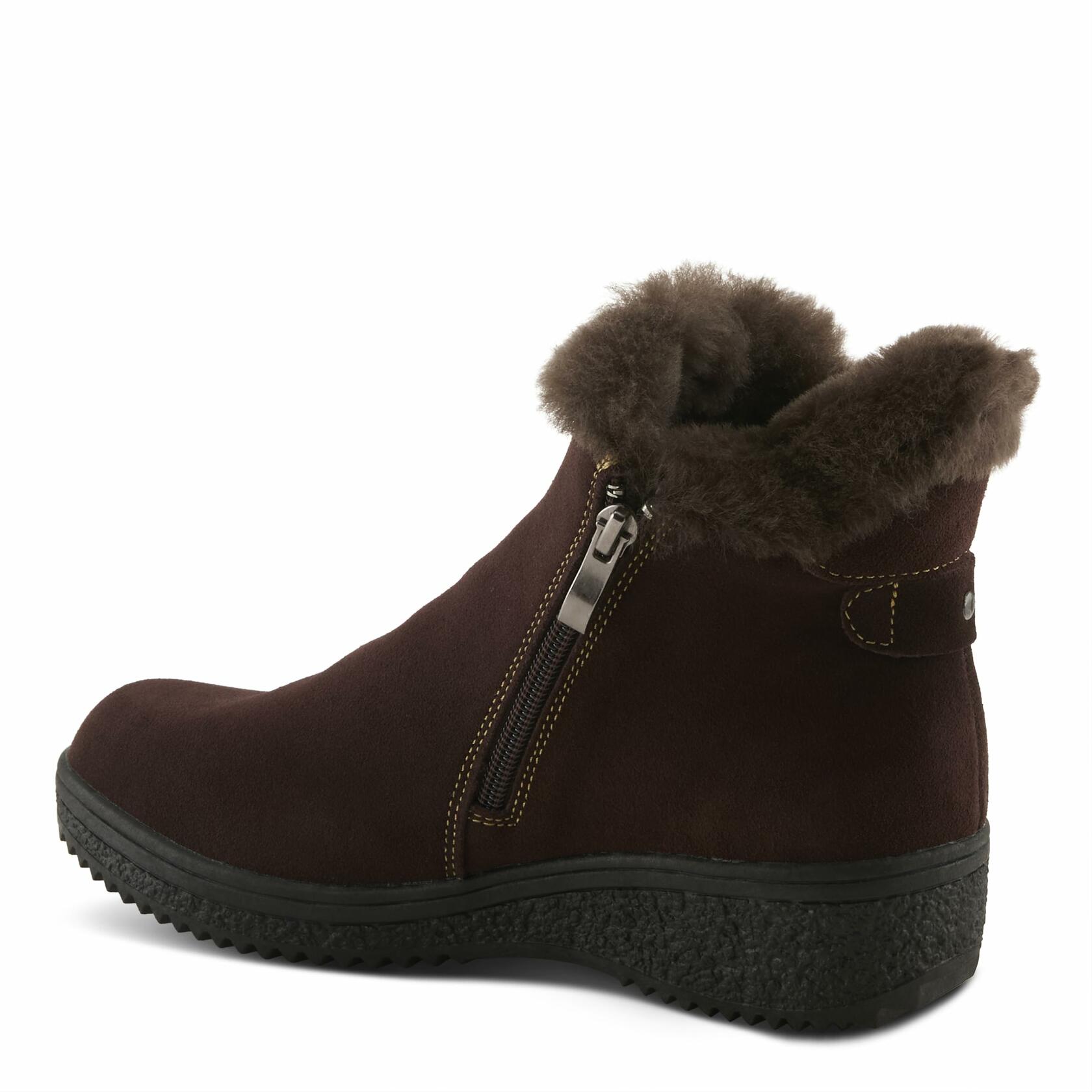 Spring Step Style: REPUBLIC This leather ankle bootie trimmed with faux fur is built with water-resistant protection and will keeps you comfortable all day long. Fully lined short faux fur insole. Upper: Leather, Suede Lining: Faux Fur Insole: Faux Fur Outsole: TPR Closure: Zipper Heel Height: 2" Platform Height: 1" Shaft Height: 5" Circumference: 9" Features: - Comfort, Flexible Sole, Water Resistant