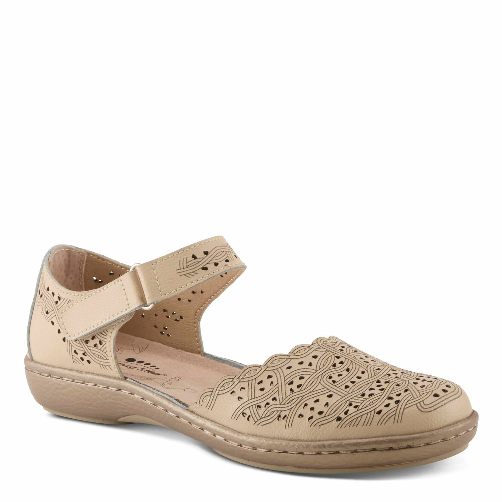 Rediscover classic elegance with the Spring Step Women's SABRIYE Mary Jane Shoes. Crafted from premium high-quality leather, these shoes feature intricate laser-cut perforations and scalloped edges for a timeless and sophisticated look. Designed with an adjustable hook-and-loop closure and a padded latex insole, the SABRIYE ensures optimal comfort and support. The lightweight, flexible sole with a lugged wedge heel adds stability and modern charm, making these Mary Janes perfect for casual or dressier occasions.