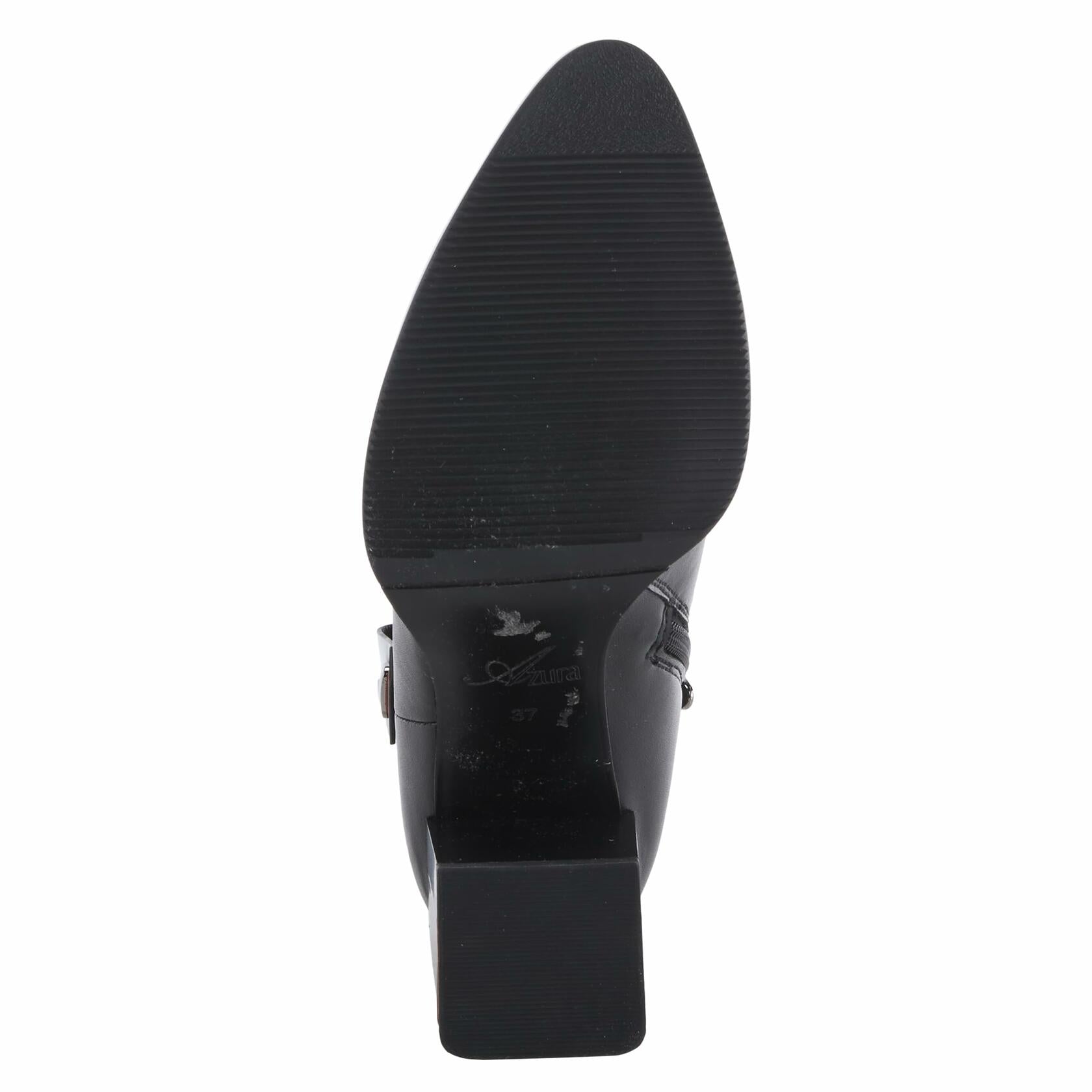 AZURA Style: ANDALUSITEThis is far from your average boot! With a functional outside pull-tab that matches the heel perfectly, this everlasting style now has an added contemporary twist. The inner velvet lining and insole provides a soft feel on the foot that is perfect for all-day wear! The classic leather black upper gives the shoe a timeless look, while still providing an architectural twist by adding color pops on the heel and pull-tab.Upper: LeatherLining: VelvetInsole: VelvetOutsole: RubberClosure: ZipperHeel Height: 3"Shaft Height: 6 1/2"Circumference: 9 1/2"Features: - Comfort, Flexible Sole - Padded Insole, Premium Fit Recommendation: True to Size