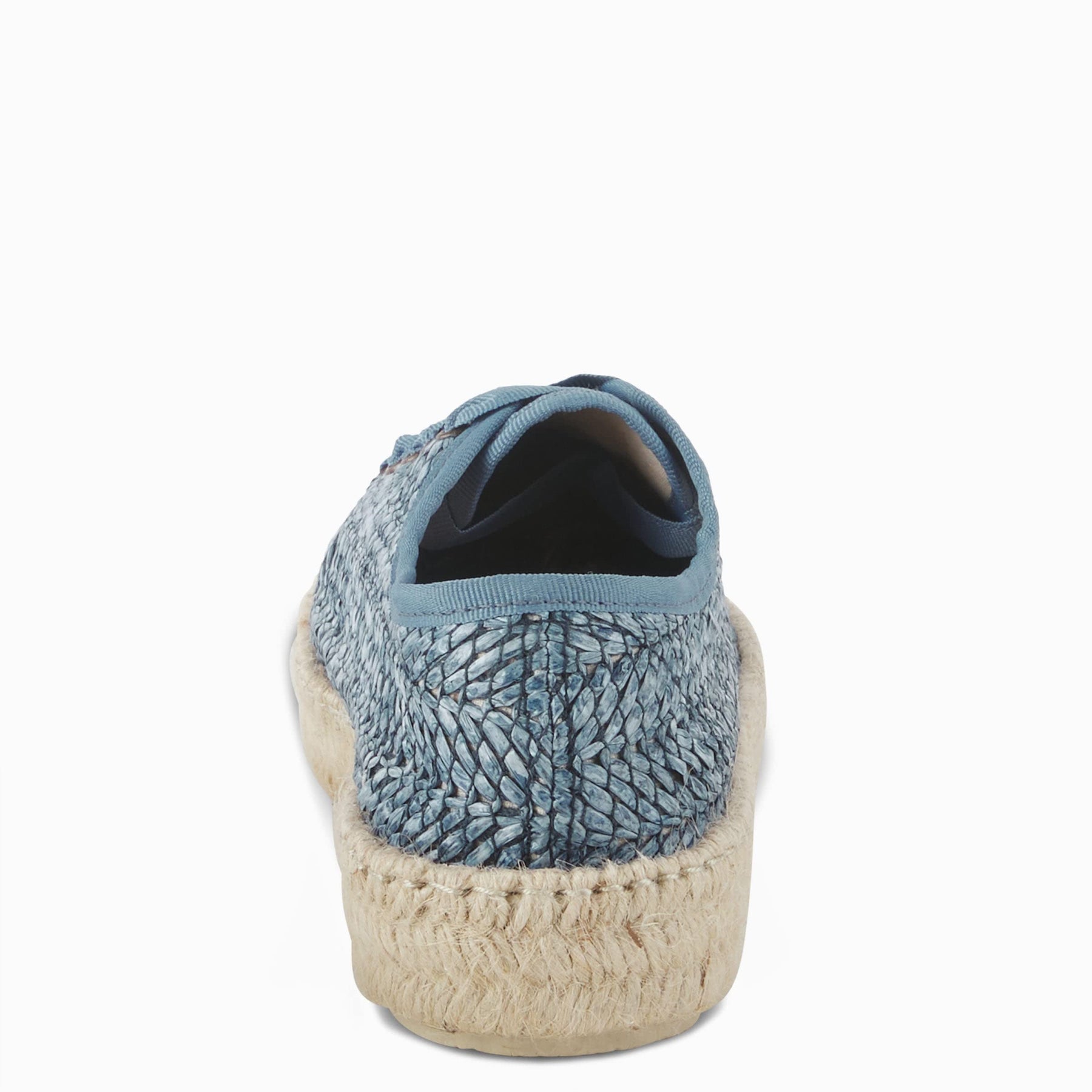 Azura Style: CHERYLL This raffia woven sneaker with a jute bottom and thick laces is the perfect everyday shoe. Pair with your worn jeans and a T-shirt for a must-have outfit combination. Upper: Rafia, Nylon Twill Lining: Canvas Insole: Leather Outsole: Jute Closure: Lace-up Heel Height: 1 1/4" Platform Height: 1" Features: - Adjustable, Comfort, Padded Insole, Premium, Textured Made in Spain