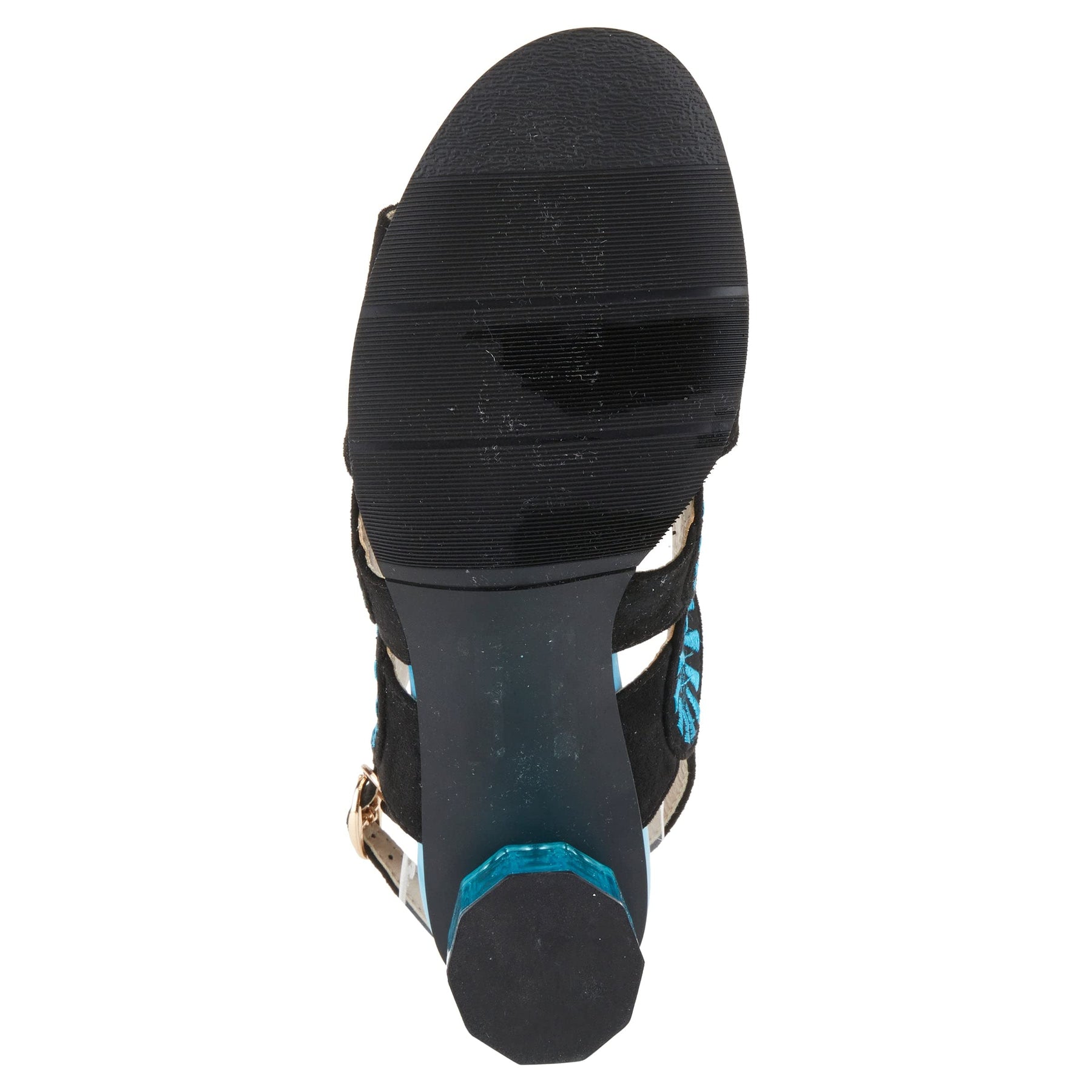 Step out in style with the Azura Women's EMBROIDERY Pumps & Heels, a true statement piece for your wardrobe. Featuring a geometric transparent cylindrical heel and a multicolored circular geometric design on the vamp, these heels exude contemporary elegance. Crafted with a faux suede upper, microfiber lining, and a leather insole, they offer both style and comfort. The adjustable ankle strap ensures a secure fit, while the 3 3/4" heel height adds the perfect amount of lift. Designed for those who love to stand out, these heels are perfect for any chic occasion.