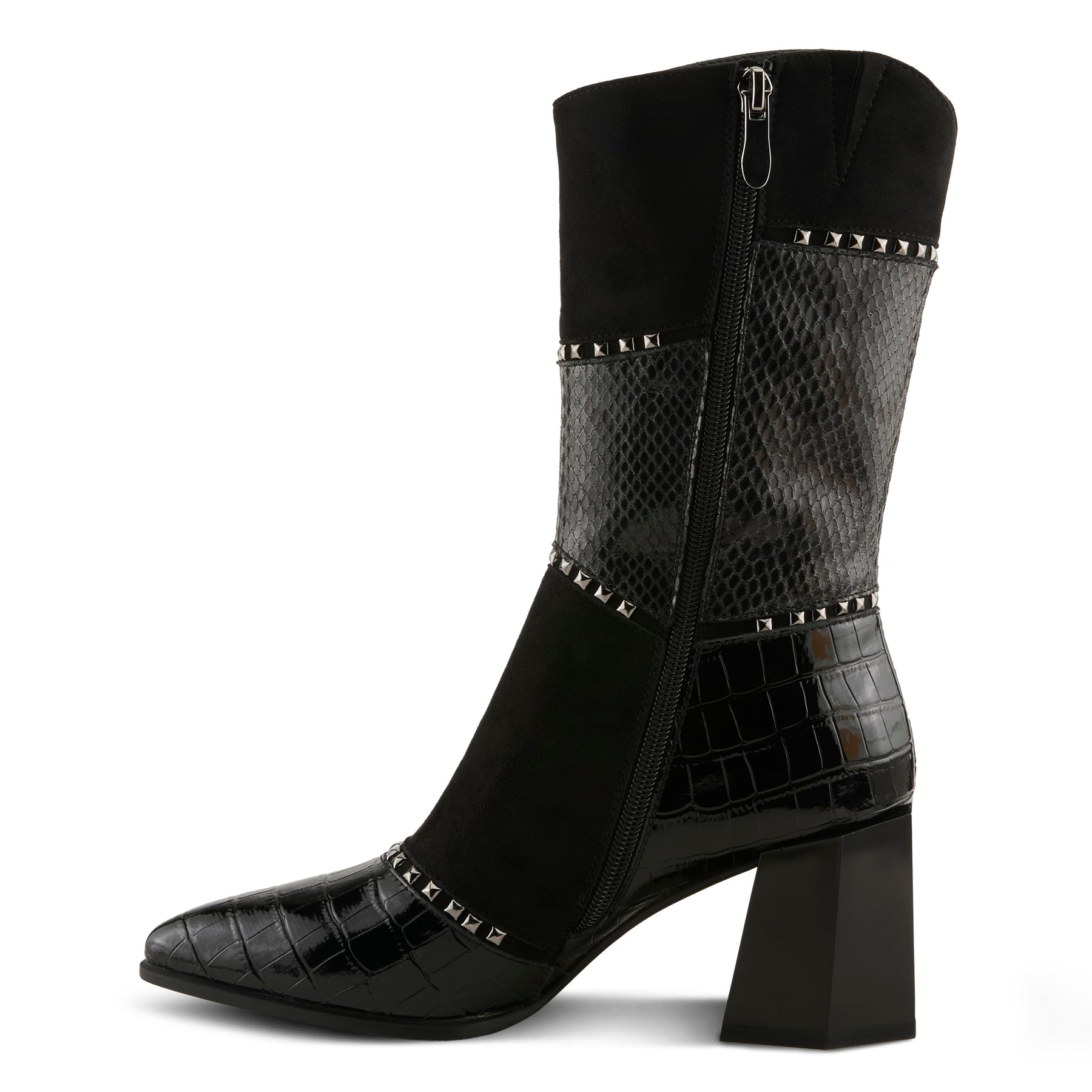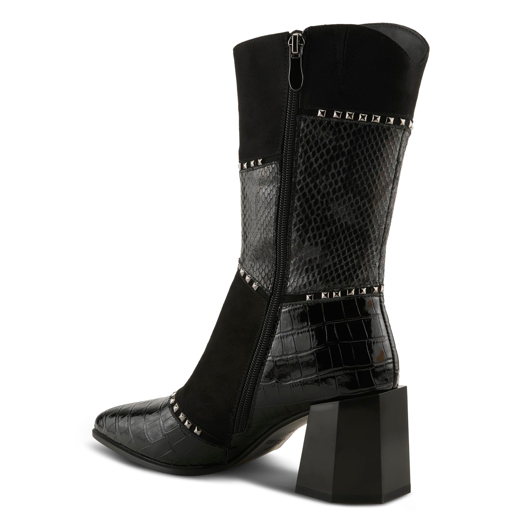 Azura Women's ZAYRINA Mid-Shaft Leather Boots with Animal Print, Stud Details, and Zipper Closure Black EU 38/ US 7.5-8