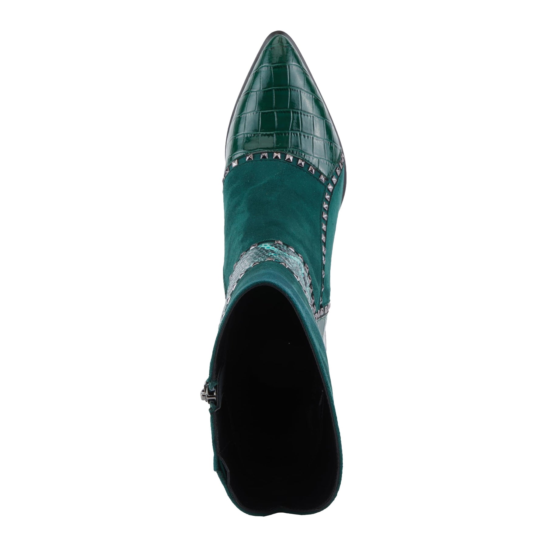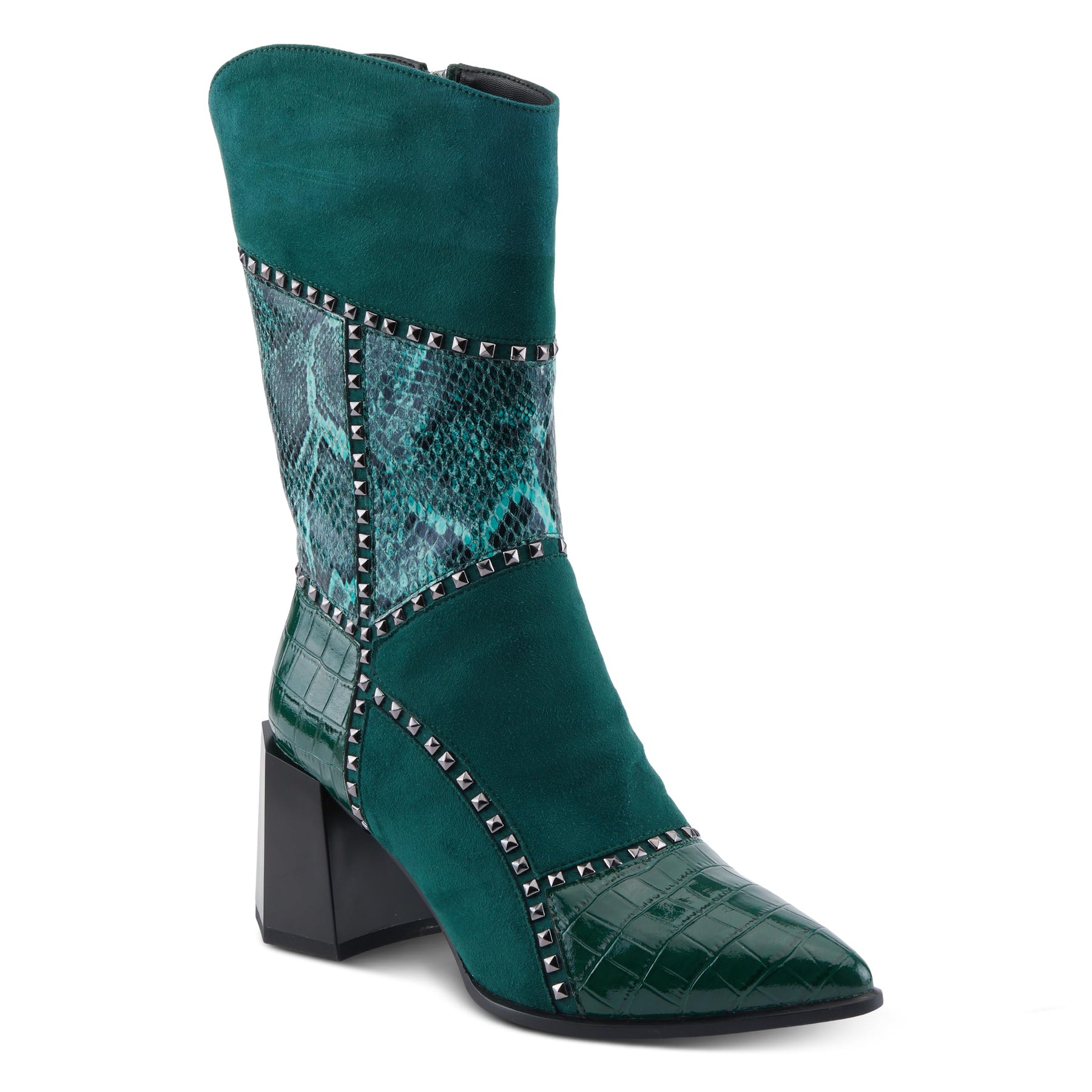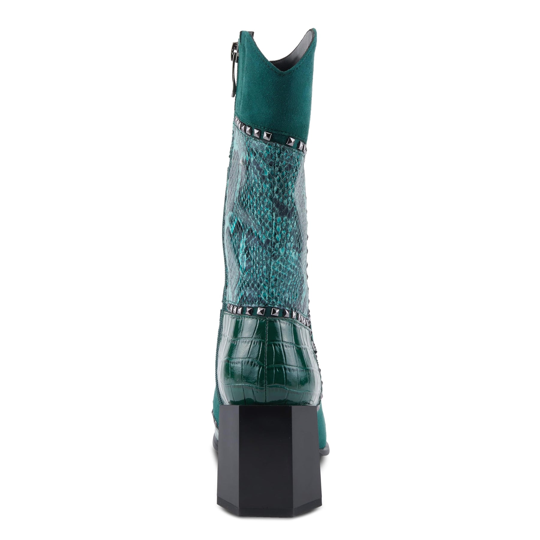 Azura Women's ZAYRINA Mid-Shaft Leather Boots with Animal Print, Stud Details, and Zipper Closure Green EU 38/ US 7.5-8