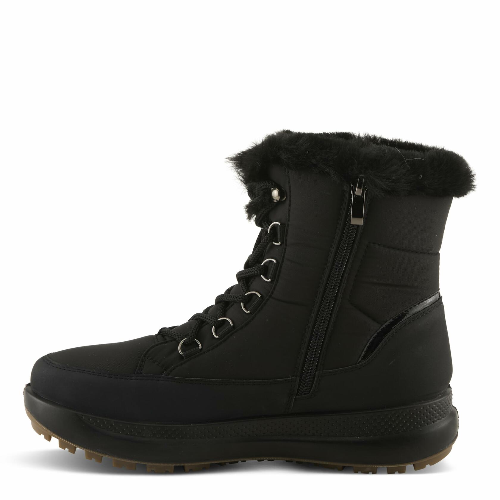 Conquer the cold in comfort and style with the Flexus LAROUI winter bootie. Built with a weather-resistant nylon upper and soft faux fur lining, this ankle-height boot delivers cozy warmth and dry comfort all season long. The easy slip-on design ensures quick wear, while the platform sole provides lightweight support and traction. Whether you're running errands or strolling snowy streets, LAROUI blends protection, fashion, and functionality into one winter essential.