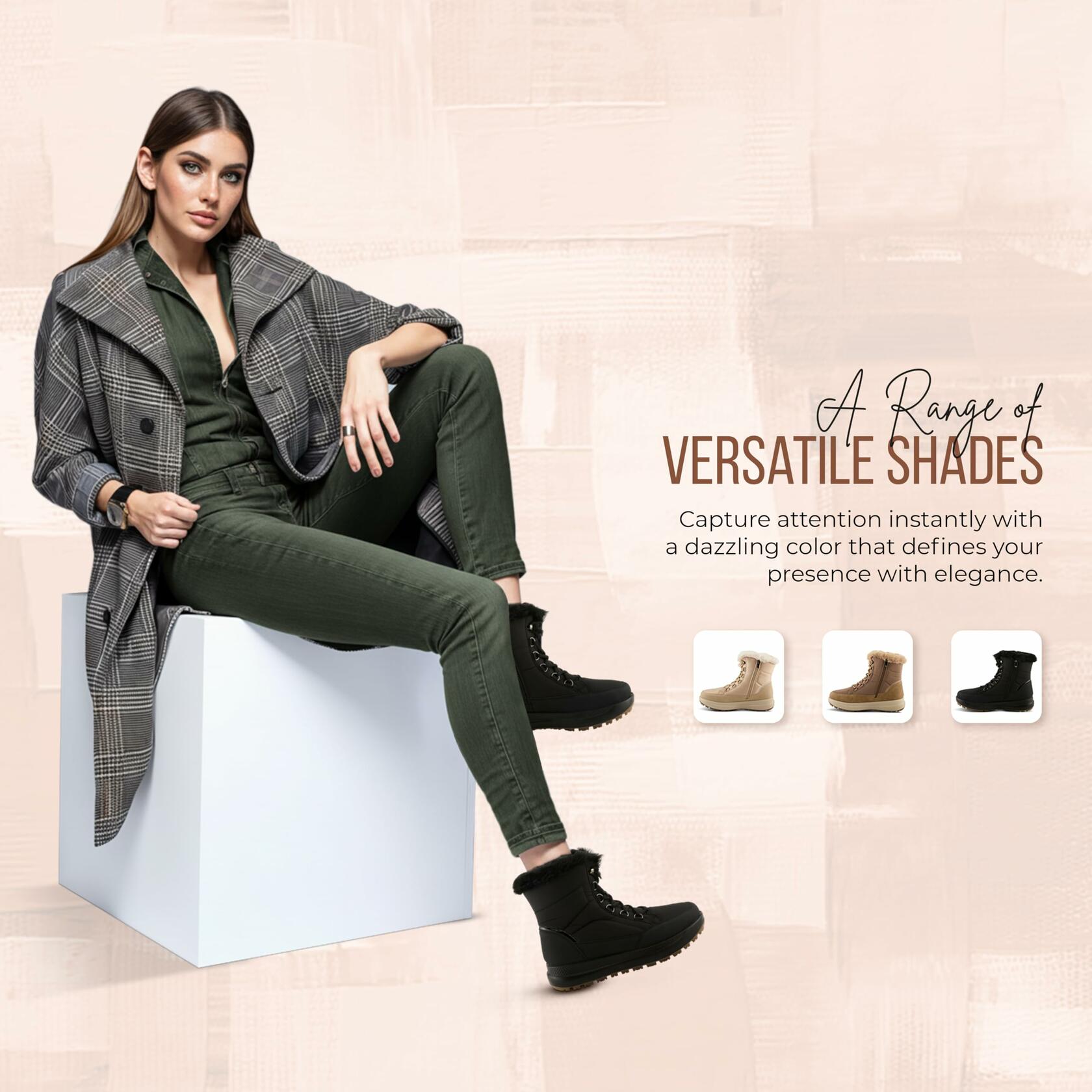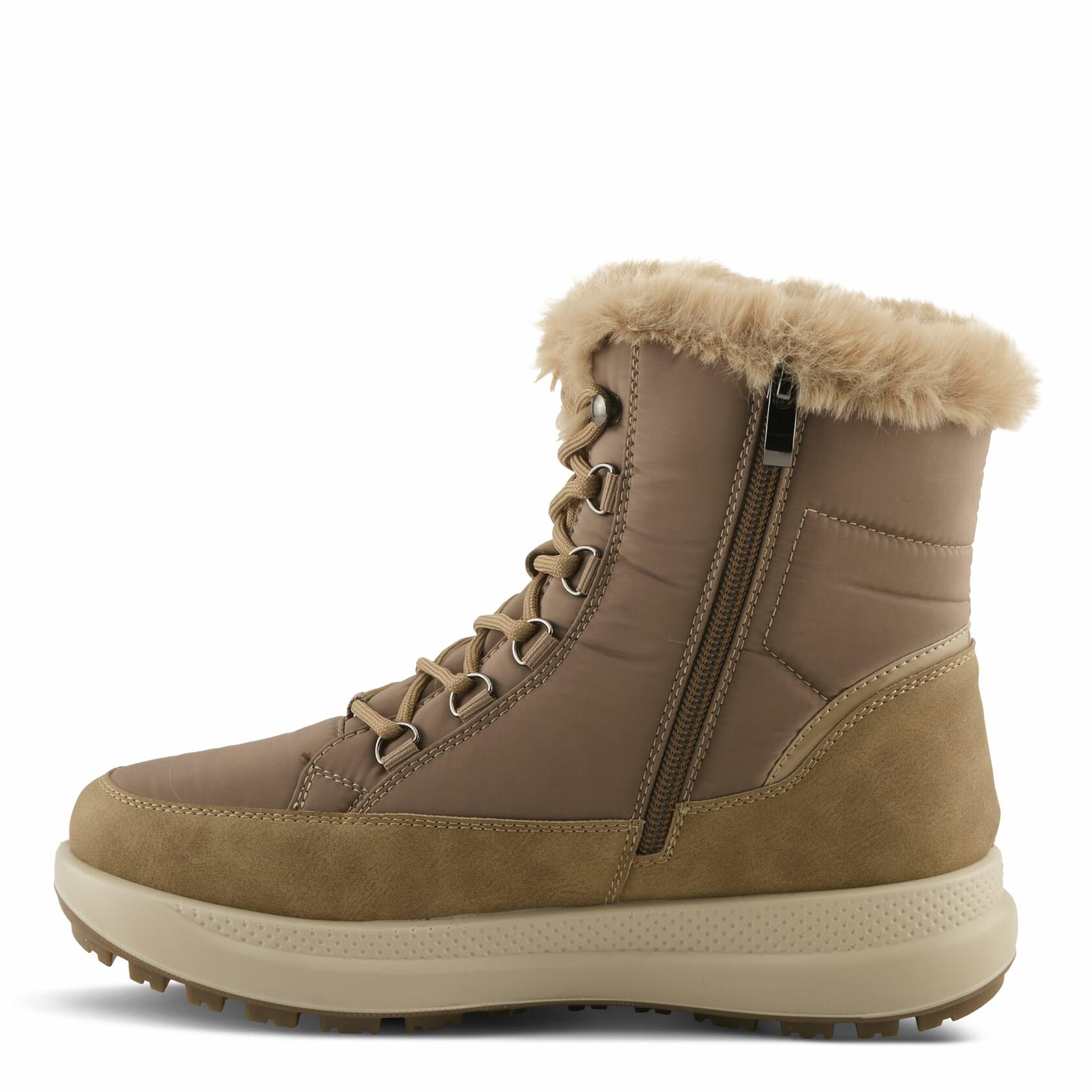 Conquer the cold in comfort and style with the Flexus LAROUI winter bootie. Built with a weather-resistant nylon upper and soft faux fur lining, this ankle-height boot delivers cozy warmth and dry comfort all season long. The easy slip-on design ensures quick wear, while the platform sole provides lightweight support and traction. Whether you're running errands or strolling snowy streets, LAROUI blends protection, fashion, and functionality into one winter essential.