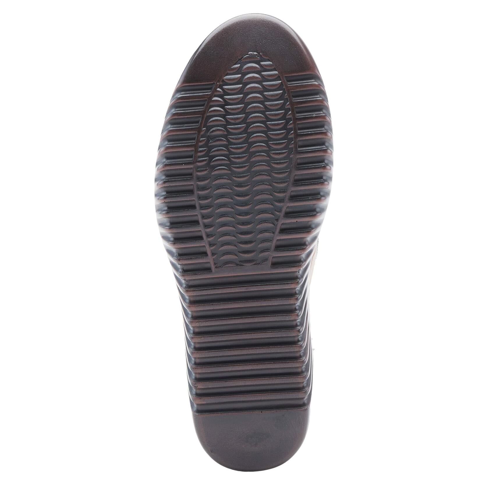 L`Artiste Style: Fischer Genuine, hand-painted and embossed leather clog with double gore for easy on and off and better fit on a lightweight wedge. Upper: Leather Lining: Synthetic Insole: Synthetic Outsole: Polyurethane Closure: Slip-on Heel Height: 2 1/4" Platform Height: 1 " Features: - Arch Support, Comfort, Elastic, Hand-painted, Padded Insole, Removable Insole Disclaimer: L'Artiste products are made with natural tanned leather using traditional hand painting techniques. This unique finishing process is used to create a natural effect with color variations to deliver authentic look and beauty.