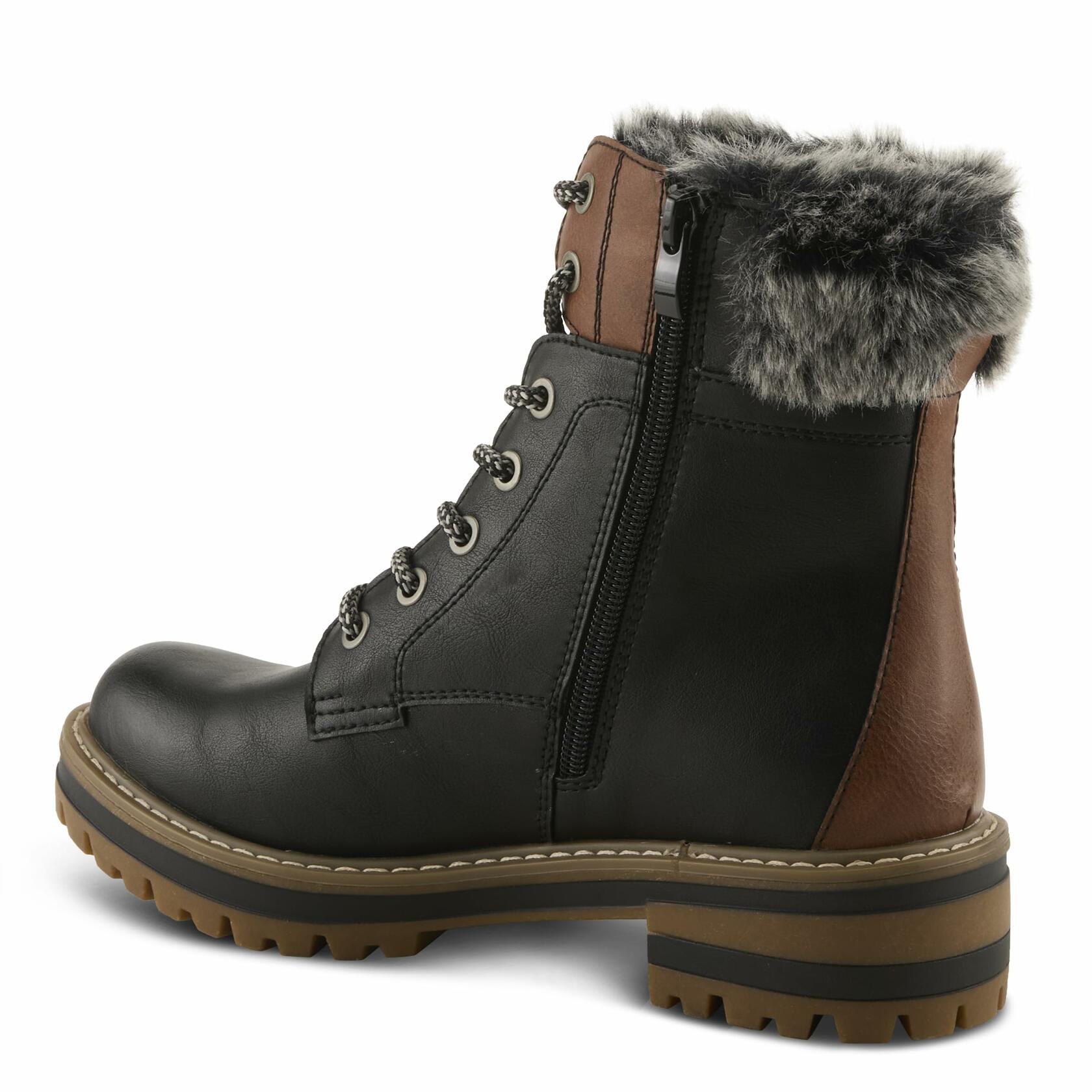 The Patrizia Canario womens winter boot offers a perfect blend of style, warmth, and practicality for colder months. The water-resistant faux leather upper protects feet from light rain and snow, ensuring dryness and durability. This boots two-tone design is accented with plush faux fur lining, which keeps feet cozy while adding a fashionable touch. The lace-up closure combined with an inside zipper provides an adjustable and secure fit with effortless on/off convenience. The durable lug sole offers reliable traction on slick or uneven surfaces, making walking safer during winter. The 1 3/4"" block heel delivers subtle height without sacrificing comfort or stability, ideal for all-day wear. This boots cushioned textile insole and sherpa lining enhance overall comfort, making it suitable for both urban outings and weekend getaways. The 6 1/2"" shaft height and 8"-9" circumference ensure a snug yet comfortable fit. The Patrizia Canario boot is a versatile choice for fashion-conscious women seeking warmth, functionality, and elegant design during cold weather. Features: Water-resistant faux leather upper Plush warm plush lining inside Convenient lace-up and zipper Durable lug sole for traction Comfortable cushioned insole Sturdy 1 3/4 inch block heel Easy slip-on and off design Stylish two-tone winter boot Perfect for cold-weather wear Enhanced grip on slippery ground