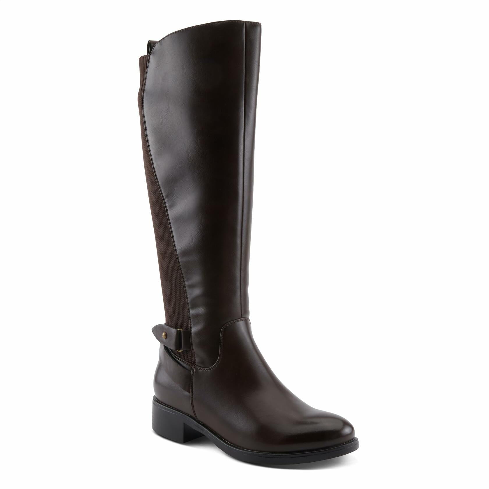 Polished and timeless, the Patrizia PAPINA riding boot blends equestrian-inspired charm with modern-day comfort. Crafted from sleek faux leather with a flexible stretch knit back panel, this knee-high silhouette molds to your leg for a custom fit. A decorative buckle adds refined detail, while the faux fur lining keeps you cozy. The low stacked heel provides everyday stability, making PAPINA the perfect match for dresses, denim, and everything in between.