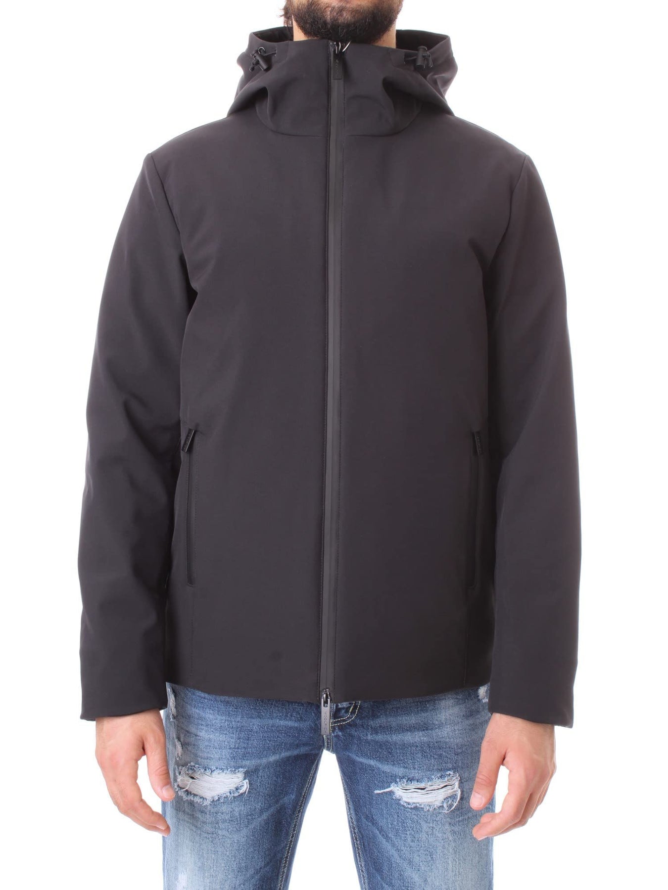 Collection: Fall/Winter Gender: Man Type: Bomber Fastening: zip Sleeves: long External pockets: 2 Material: polyester 100% Main lining: polyamide 100% Pattern: solid colour Washing: wash at 30 C Model height, cm: 185 Model wears a size: L Hood: fixed Inside: lined padded Details: visible logo Padding: 90% Duck Down, 10% Feather